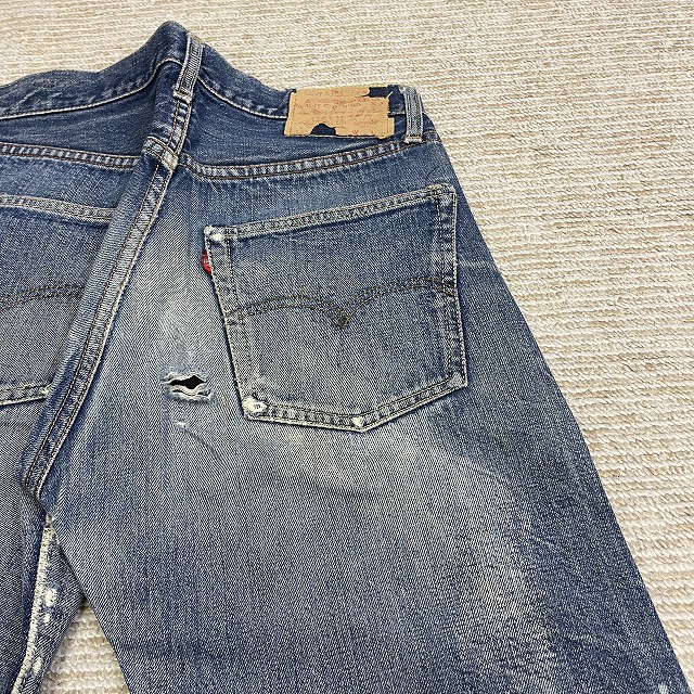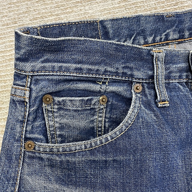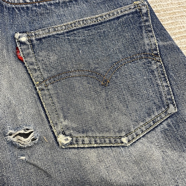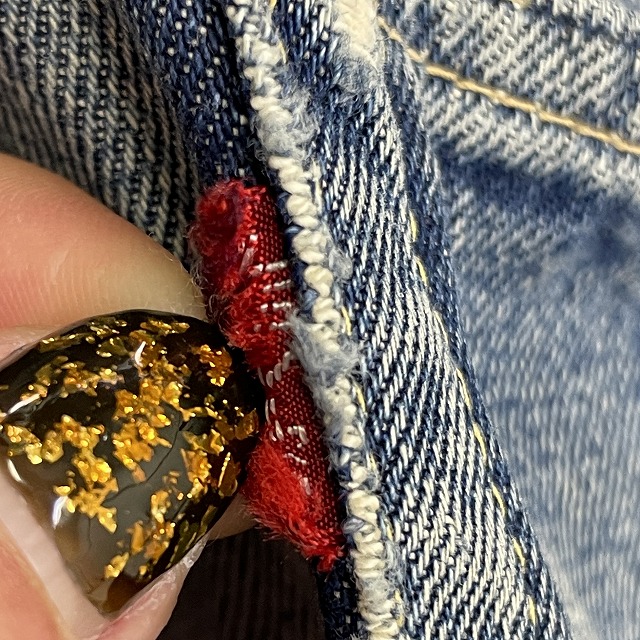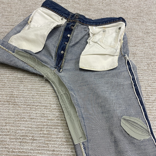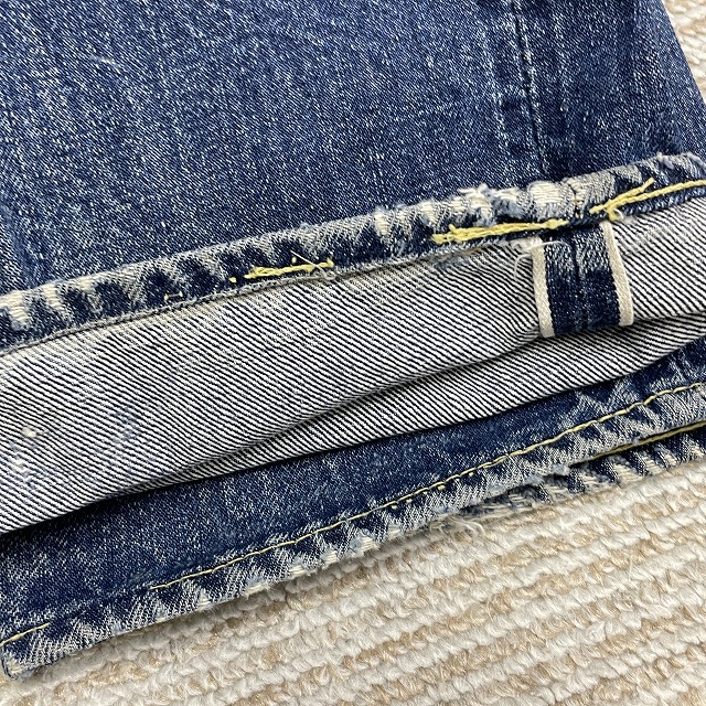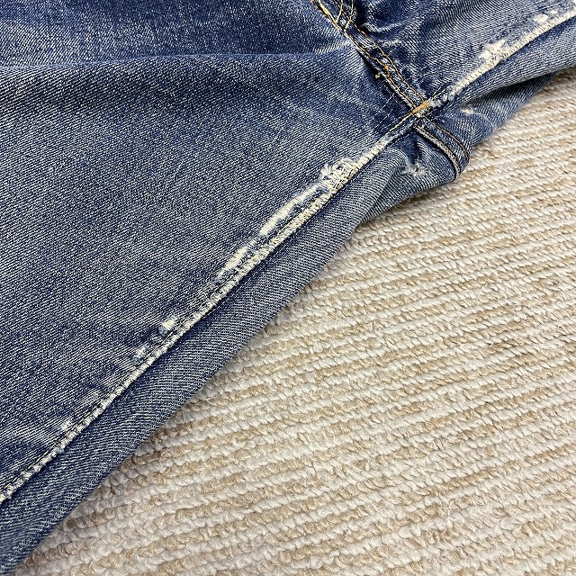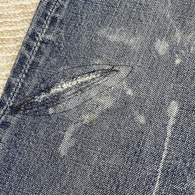 前右腿付近、股、裾等にリペアやリステッチがございます。
