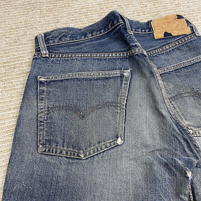 トップボタン裏刻印『6』、不均等V、Vステッチ、ウェストシングル、足長R