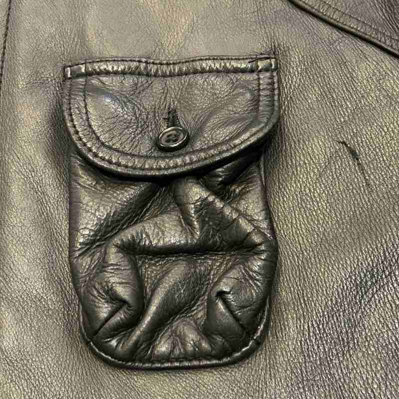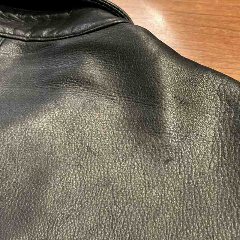 - レザー特有の傷やシワ、裏地のステッチ抜けがございます。その他に目立つ汚れやダメージは無く古着慣れされた方でしたら問題無く着用していただける状態です。