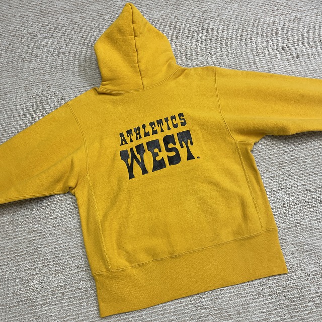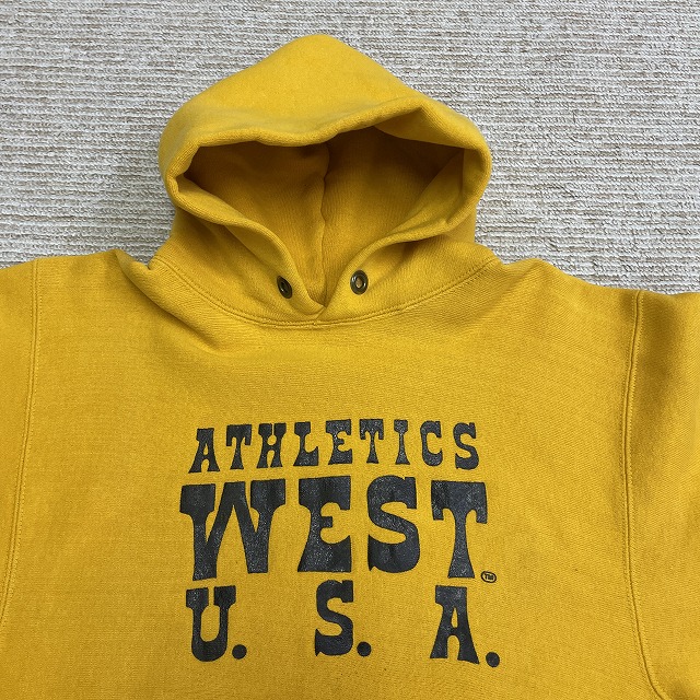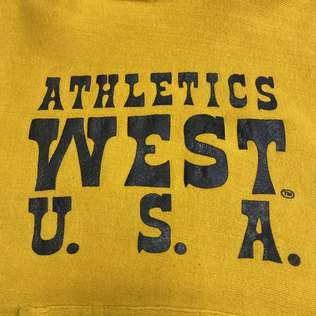 「単色タグ、両面プリント、ATHLETICS WEST U.S.A、サイズM」