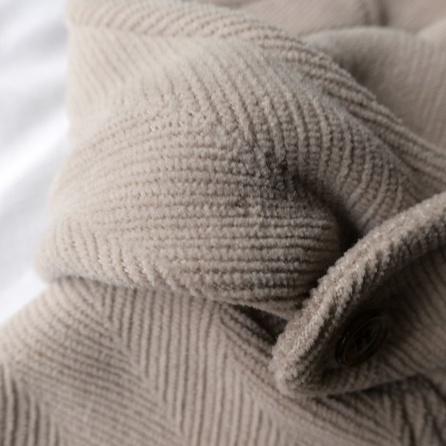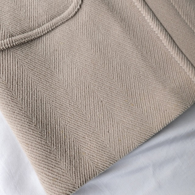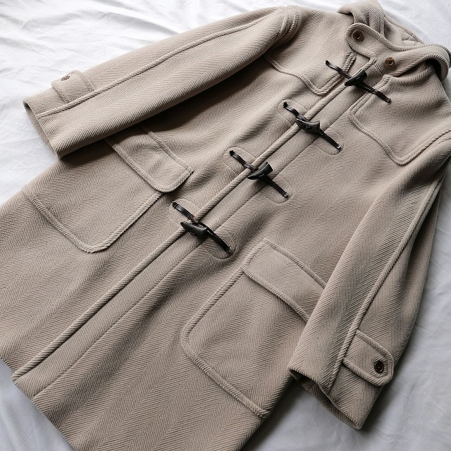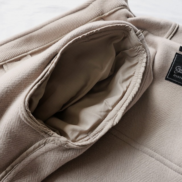 肉厚で軽くフカフカな質感のヘリンボーン生地を使用しており、ダッフルコート=重いというイメージの方が多いと思いますが、この生地を使ったダッフルコートは暖かさはもちろんですが、驚く程軽い着心地。