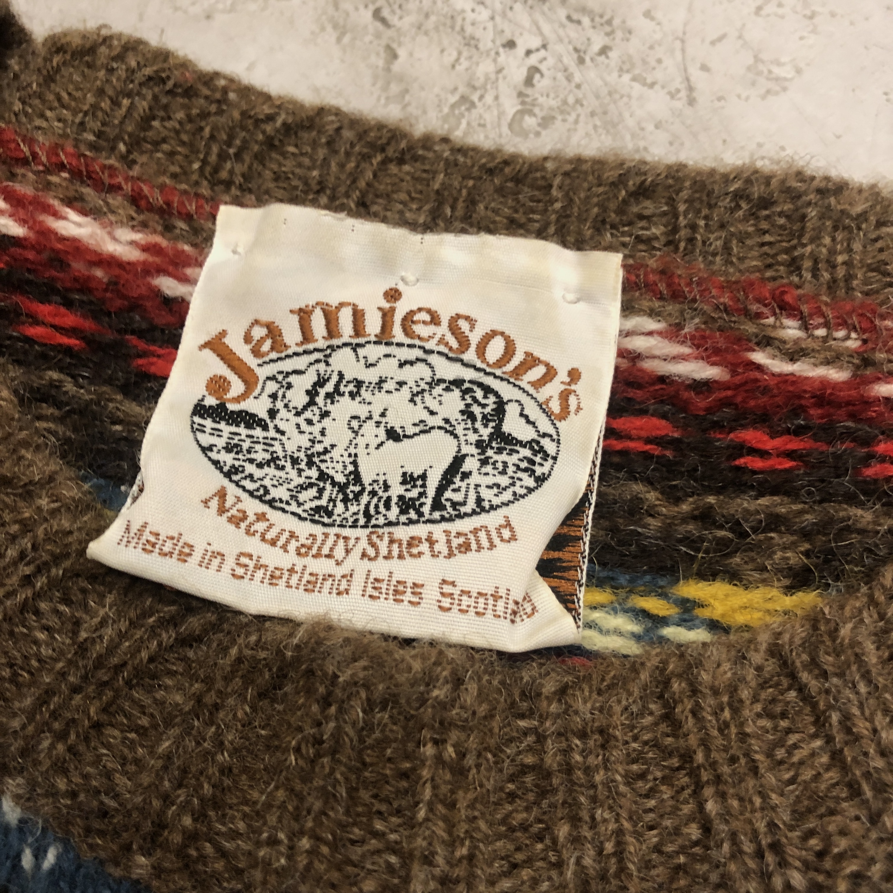 シェットランド諸島の老舗ニットメーカー〈Jamieson’s〉が編み上げたフェアアイルセーター。