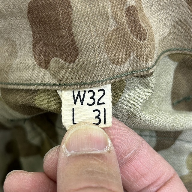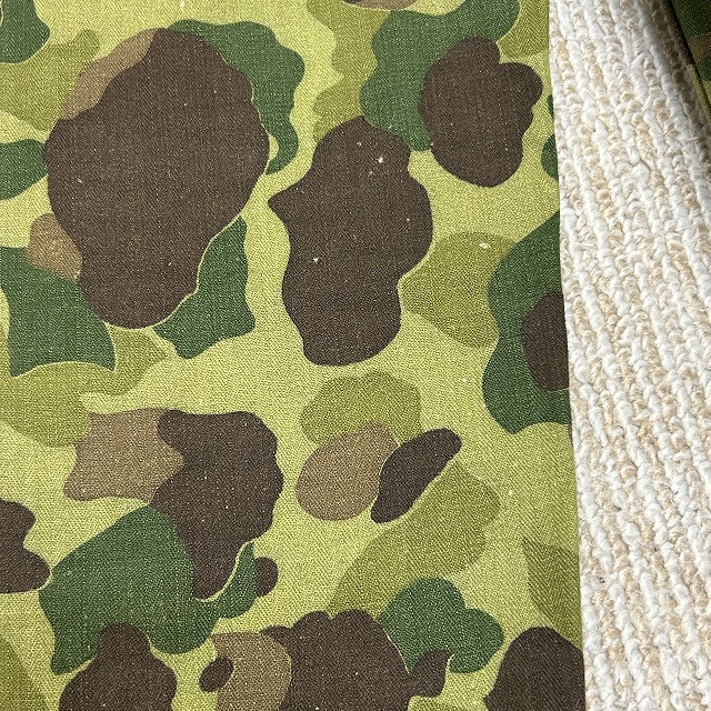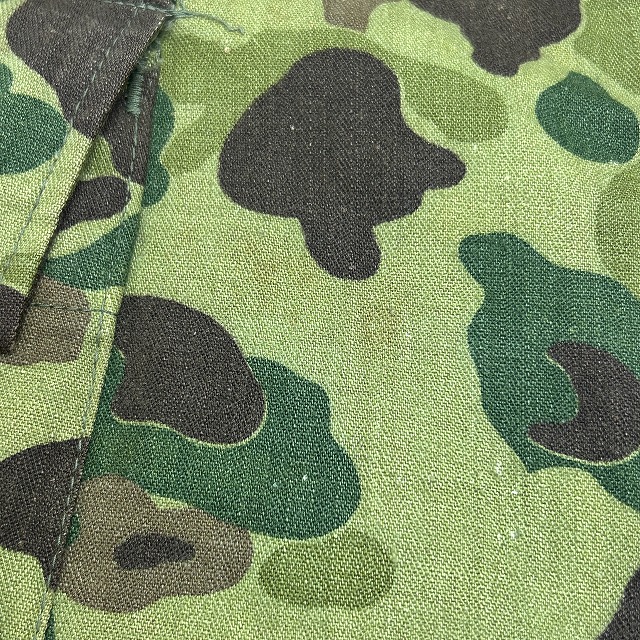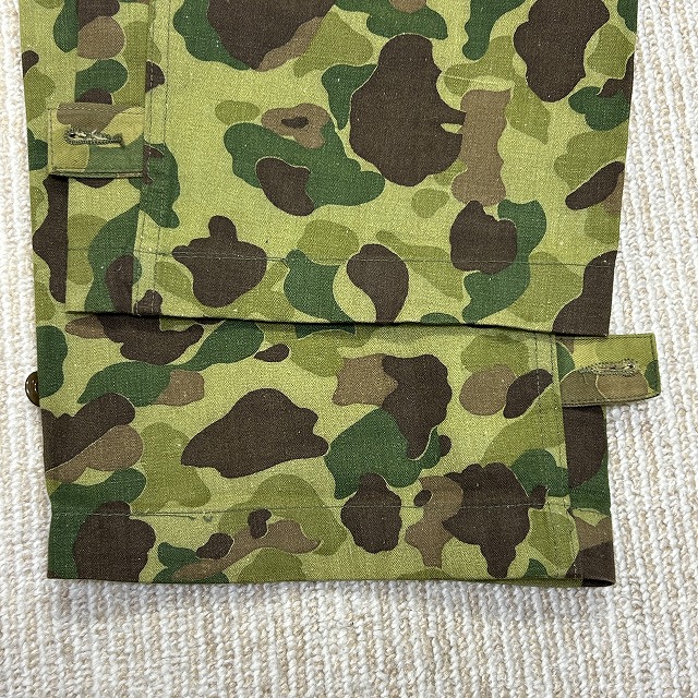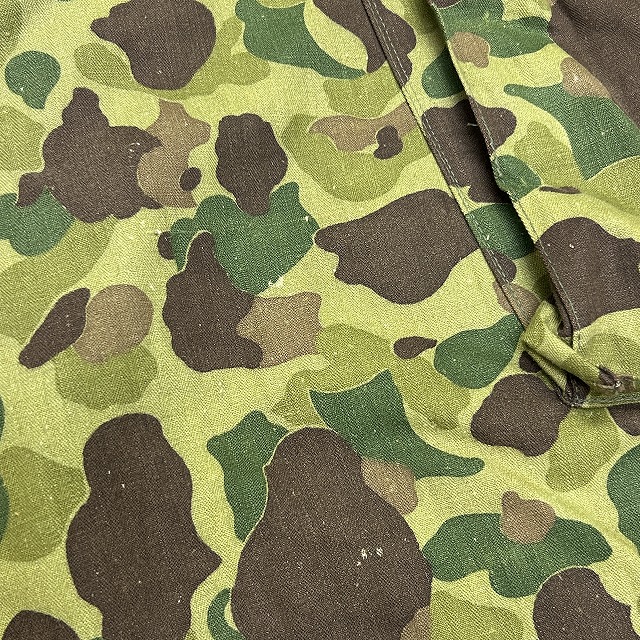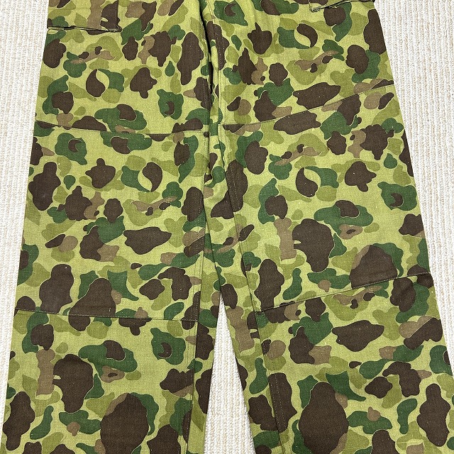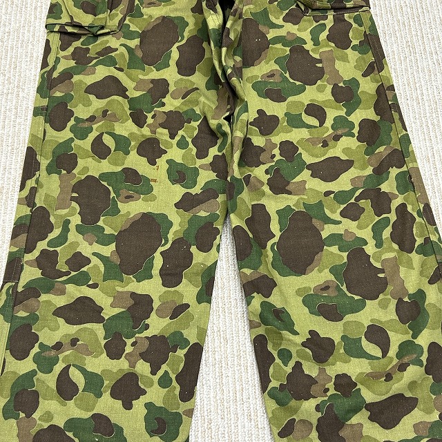 サイズ 実寸W32 L31.5 実寸 ウエスト81cm レングス80.5cm 全長110.5cm 裾幅25cm (ウェストは若干テンションをかけて計測しています) ※若干の誤差はご了承ください ・サイズガイド ウェスト:ウェスト部分の端~端×2 股下:股の合わせ部分~裾 裾幅:裾の端~端 全長:サイドのウェスト上部~裾 状態 画像の様に、汚れがございます。 その他、若干の擦れ、小傷はありますが、着用感はほとんど感じられない極上の状態です。 商品詳細 1940'S VINTAGE US ARMY M-43ダックハンターカーゴパンツ。 フロントボタンは尿素ボタン、ダブルニー仕様、裾にはアジャストタブ付きです。 USMCのダックハンターに比べ圧倒的に数が少なく大変希少です!! 特すべきはそのコンディションです。 生地にハリが残り、着用感がほとんど感じられない大変素晴らしいコンディションです! 今後、このようなコンディションでの入荷はお約束できませんので、コンディション重視の方には ぜひともご検討いただきたい極上の1本です!! ※実店舗と併売している為、ご注文時に売り切れの場合がございます。 予めご了承下さいませ。 ※お使いのモニター環境により、色の見え方が実物と異なる場合がございます。 予めご了承ください。