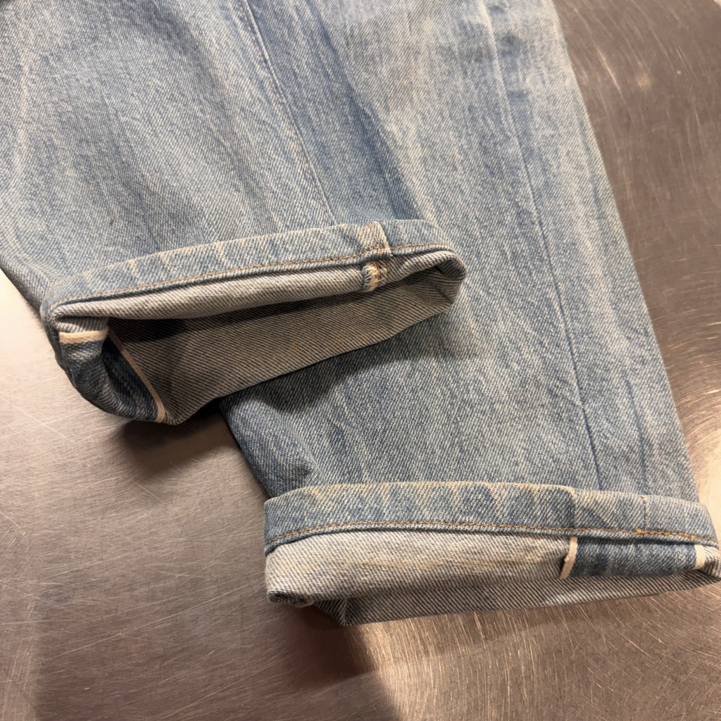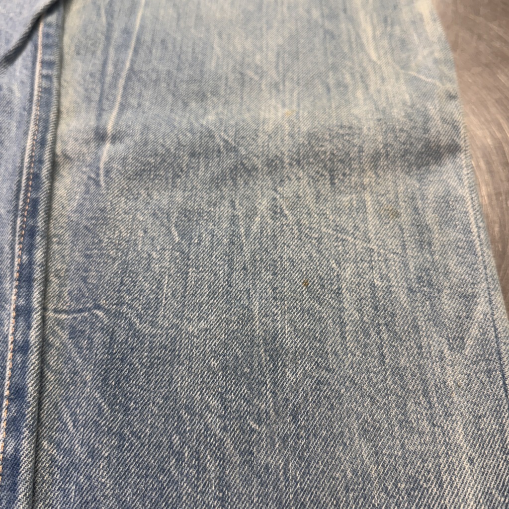 画像の様に裾のリサイズ、スレや薄シミがございますが、大きなダメージ等無くまだまだ問題無く着用可能な状態です。