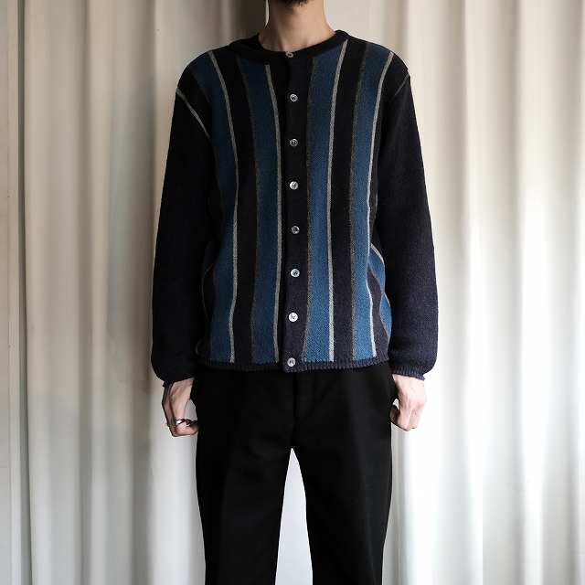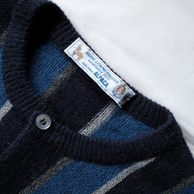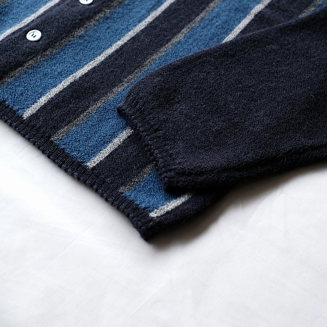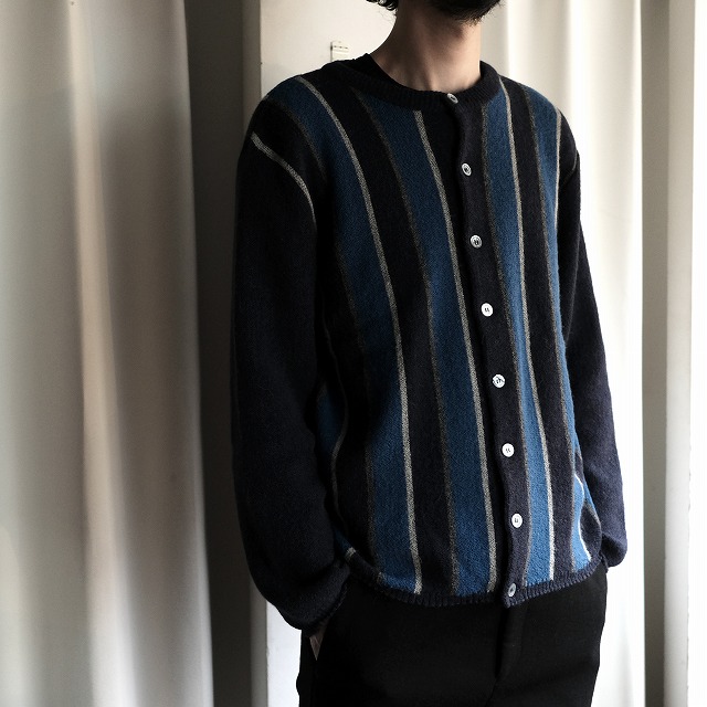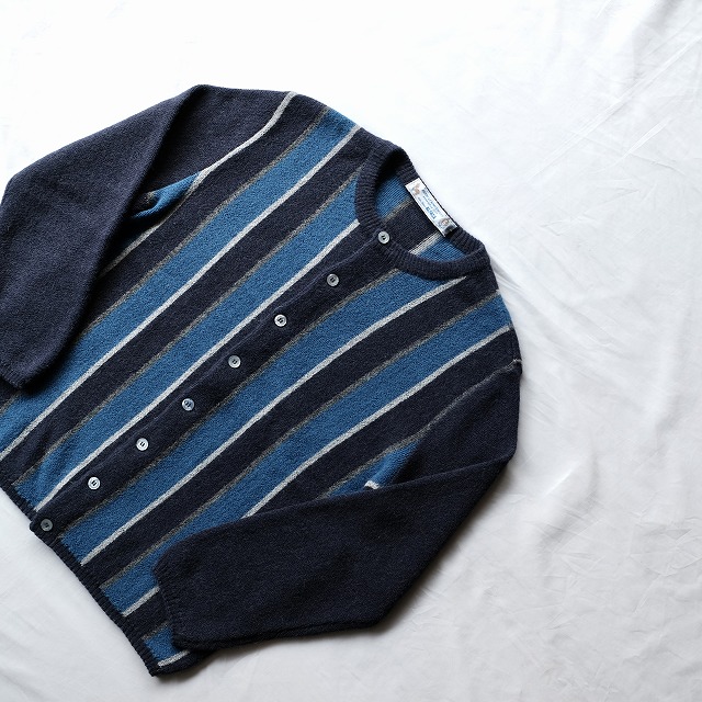 通常のVネックカーディガンではなく、クルーネックタイプ。