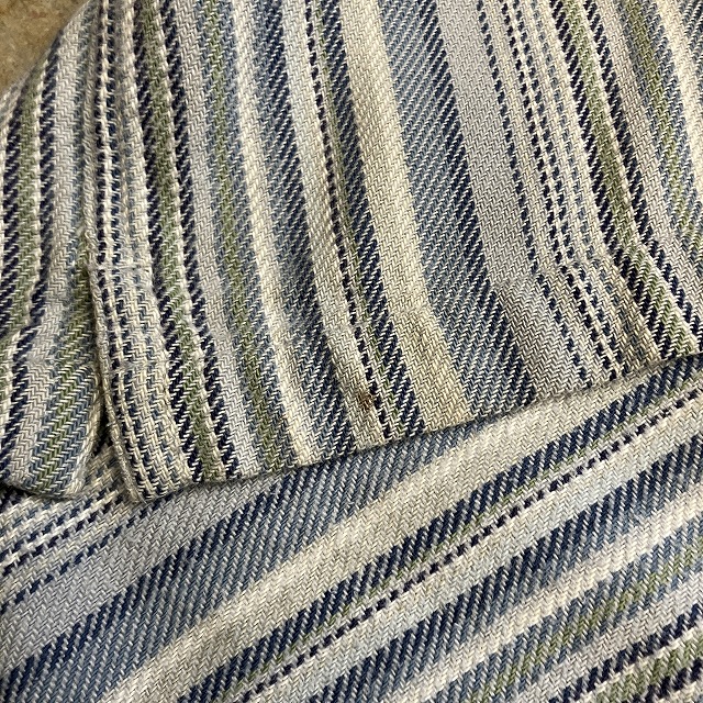 - 襟元、袖先に薄汚れがみられます。その他、毛羽立ち等の着用感ございますが、まだまだ問題なく着用していただけます。