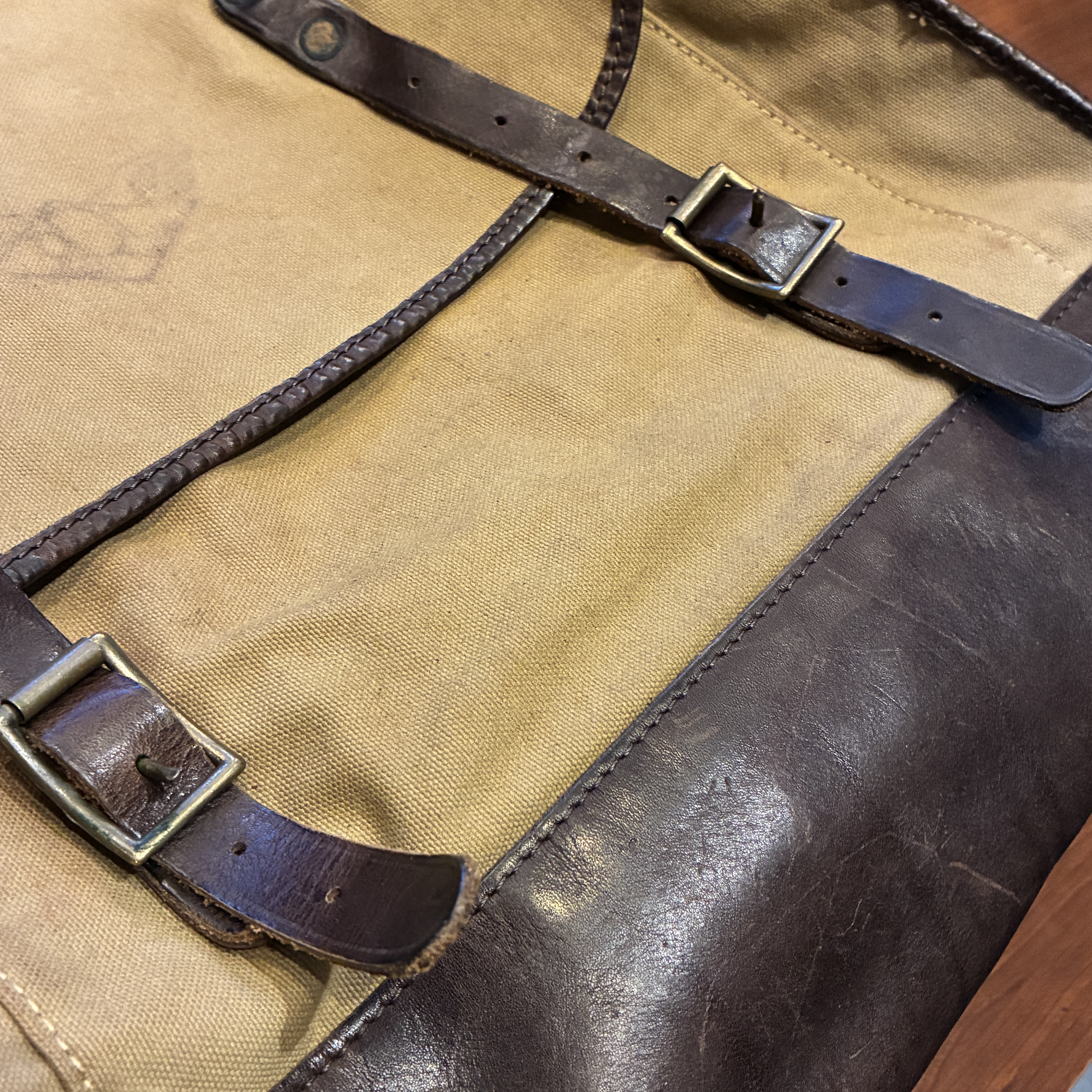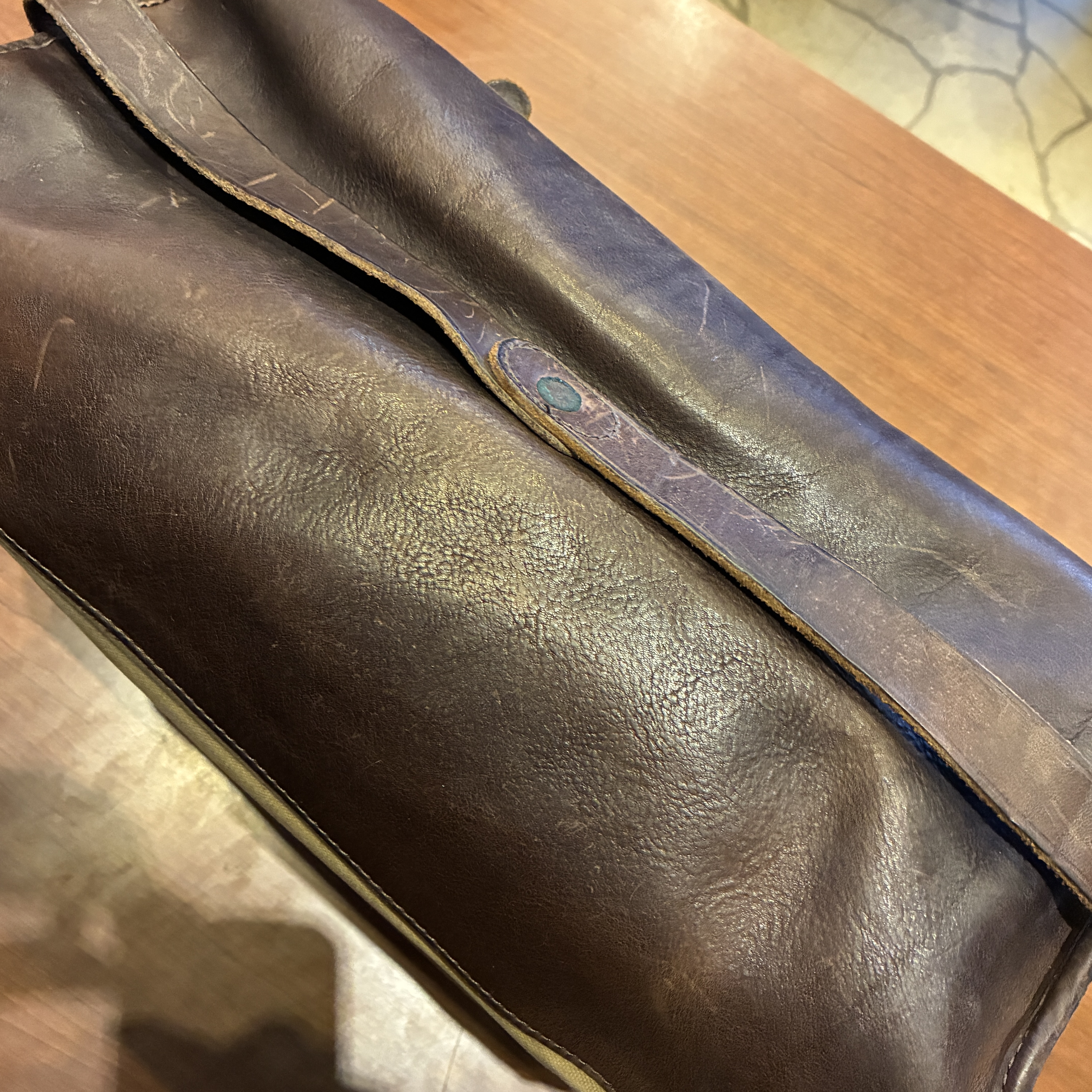 レザー部分に擦れ傷や金属部分に緑青等の多少の使用感がございますが、目立つダメージ等は無く問題無く使用していただける状態です。