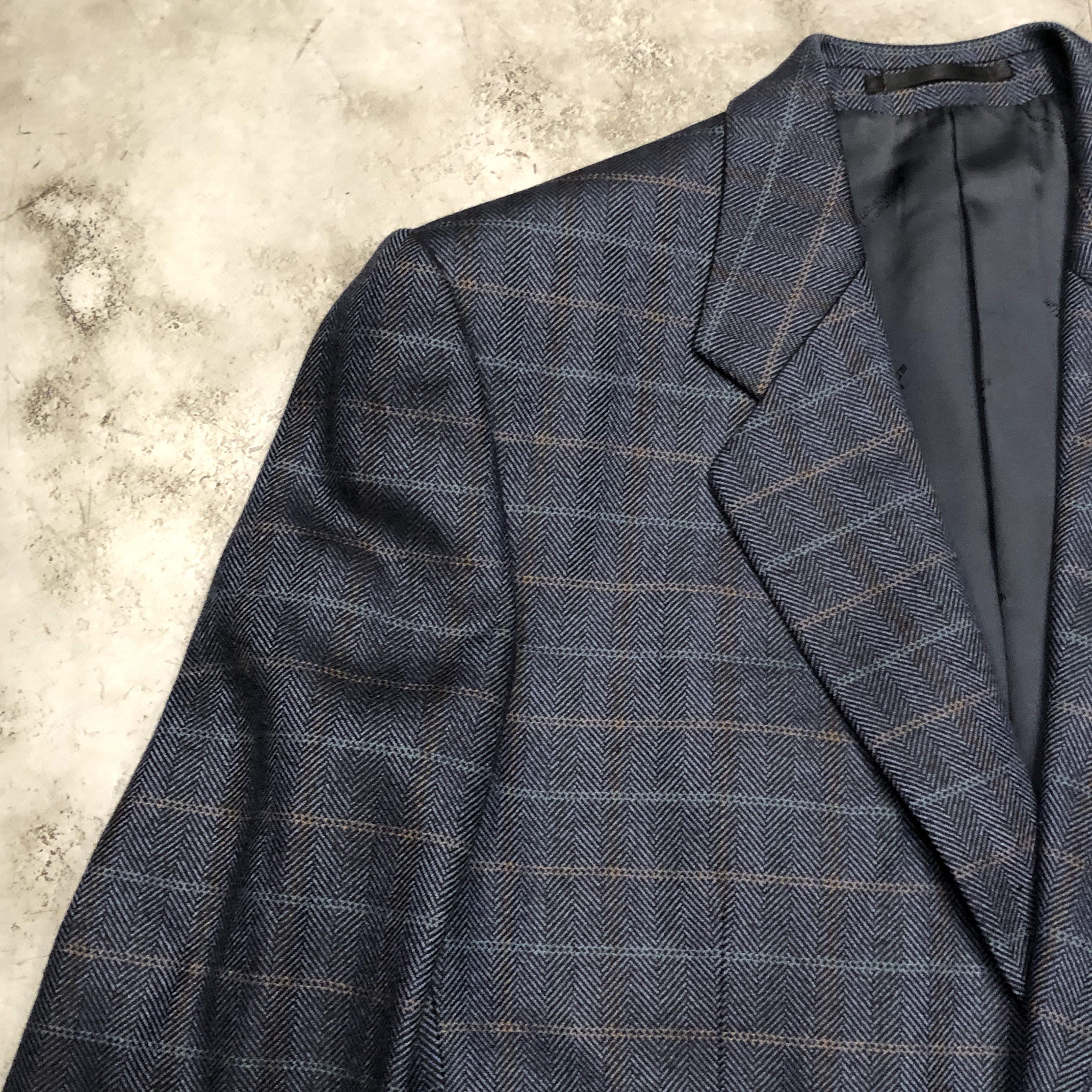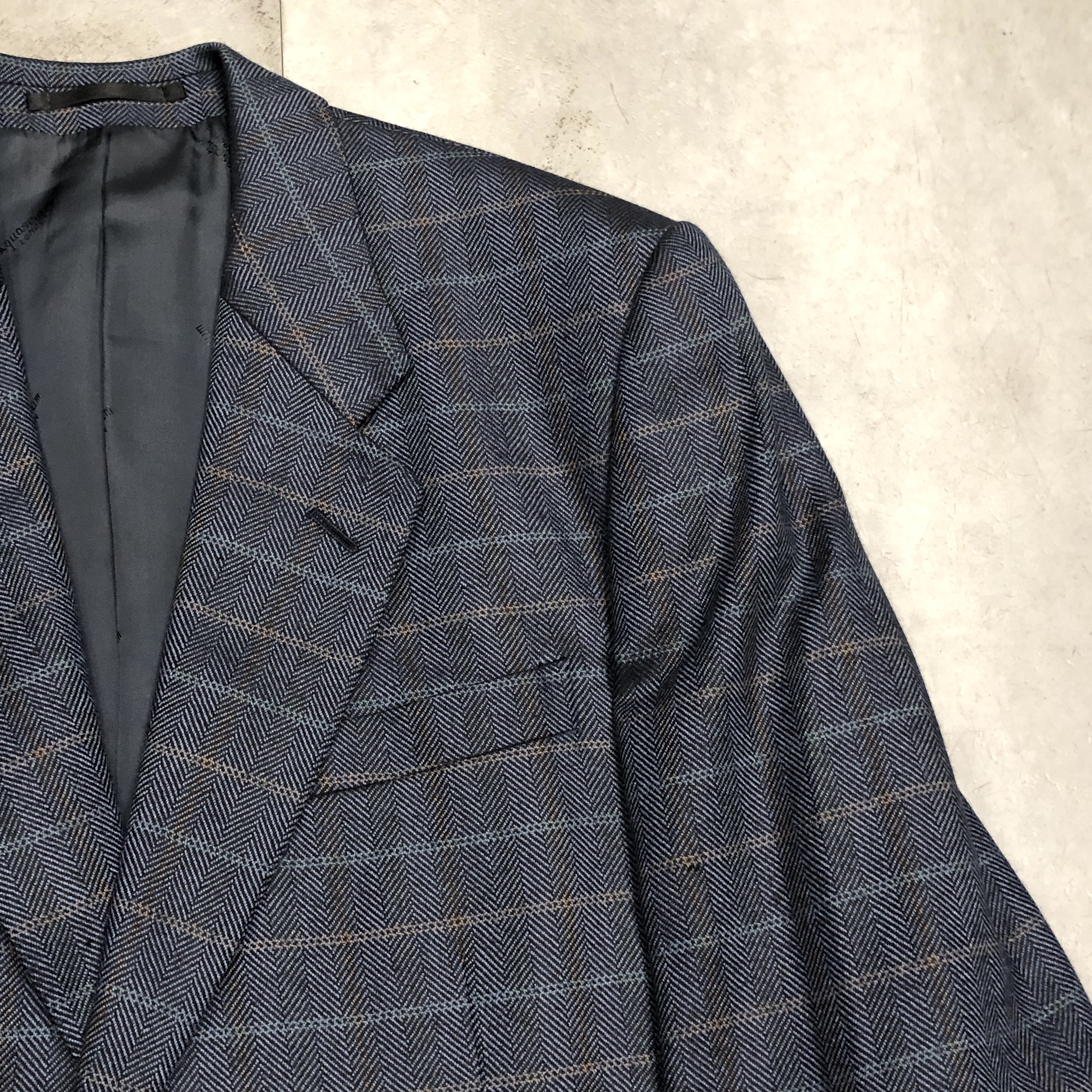 王室御用達を誇るリジェントストリート本店ラベル、英国製ならではの丁寧な縫製、そして贅沢にもウール75%・シルク25%の混紡生地が織り成す、しなやかな艶と柔らかな手触り。
