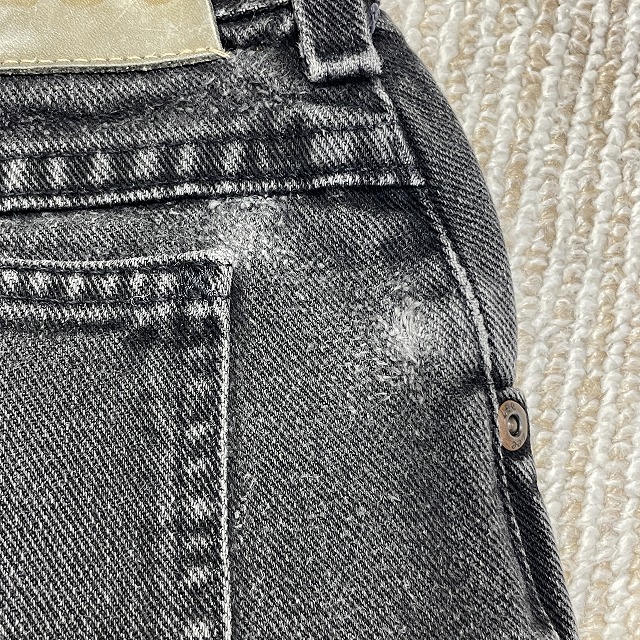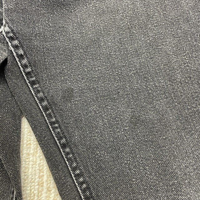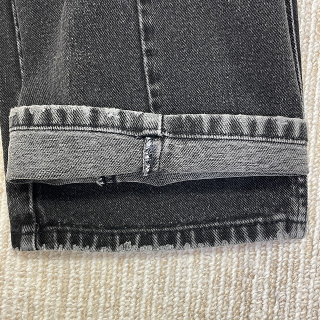 「ブラックデニム、ストレートシルエット、実寸W33.5 L30.5」
