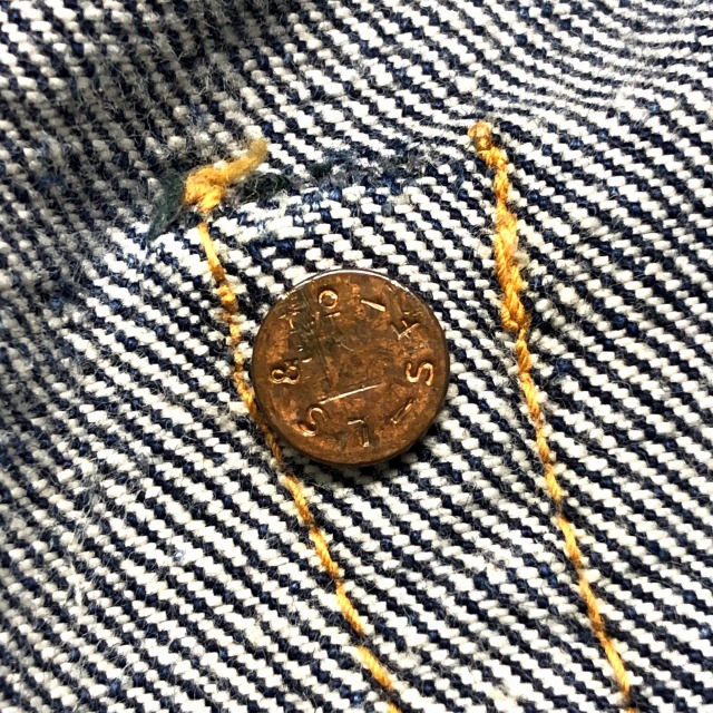 ポケット裏リベット銅色、コインポケット耳付き、フロントボタン通常R、