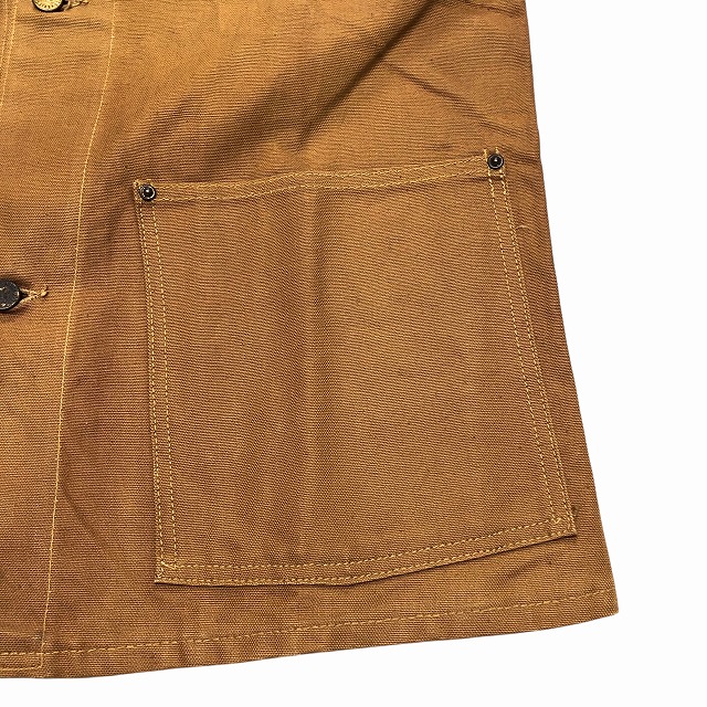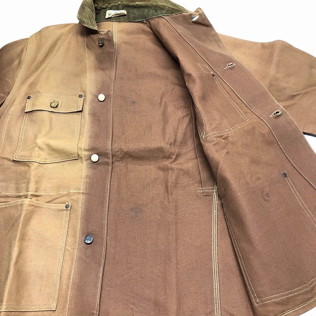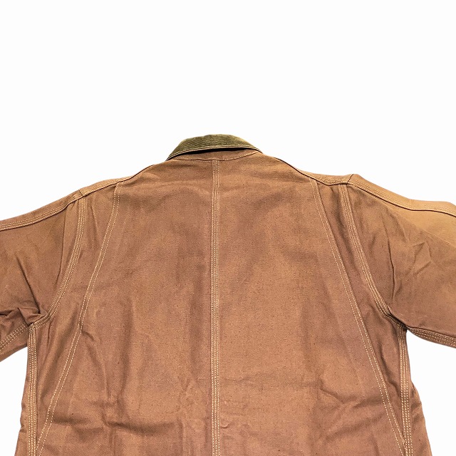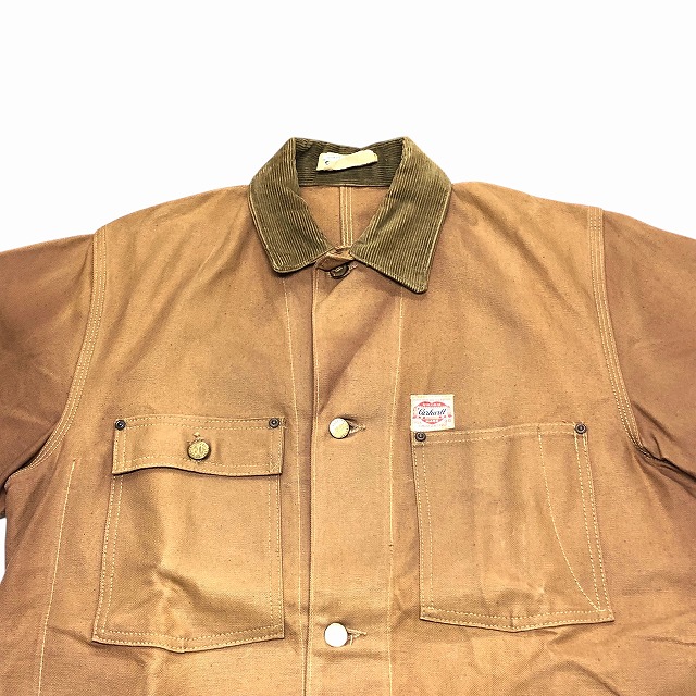 襟コーデュロイ、ボタンは社名刻印入りボタンです。