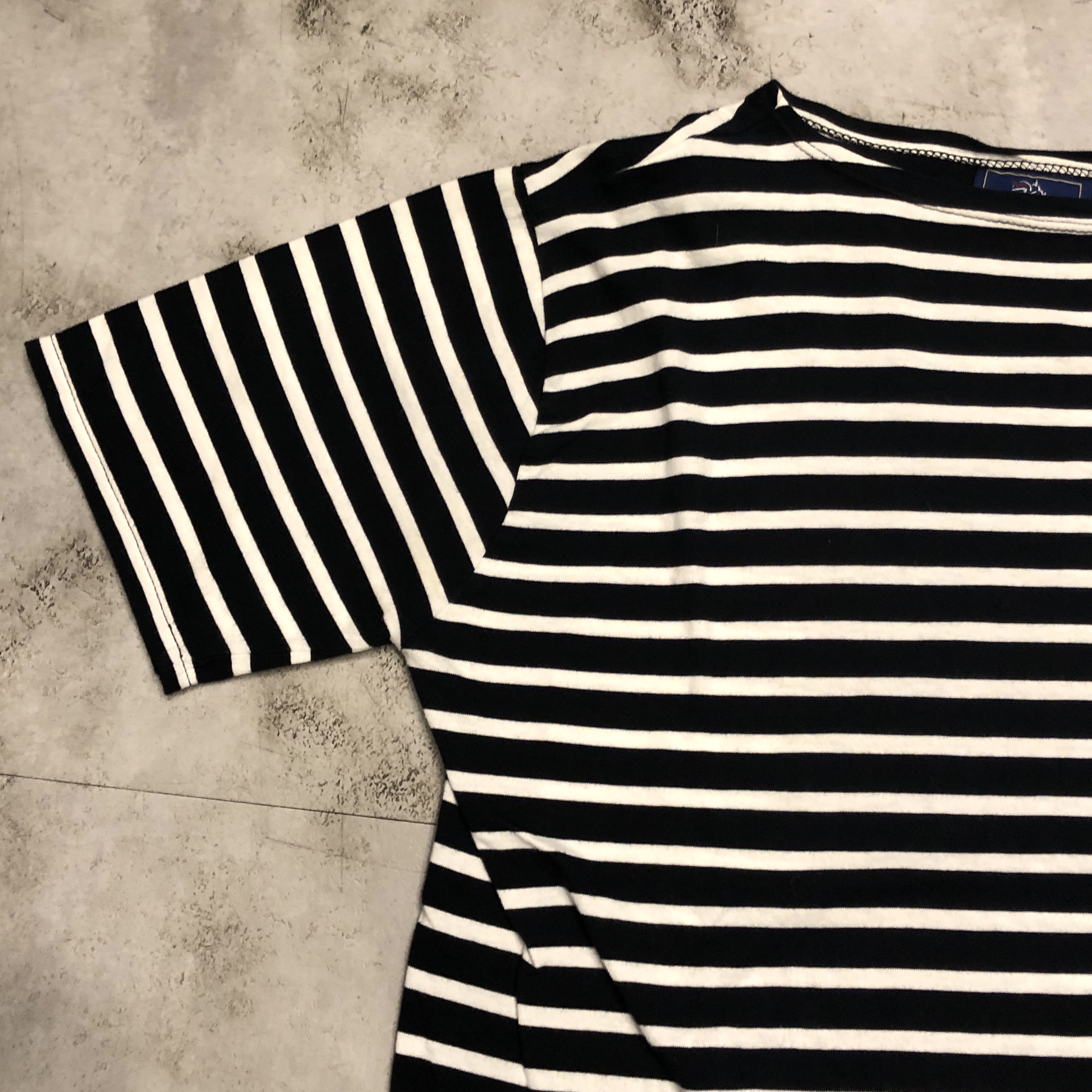 やや広めに取られたボートネック、セットインスリーブ、程よくゆとりを持たせた身幅が特徴のフレンチマリンスタイルの代名詞的カットソー。