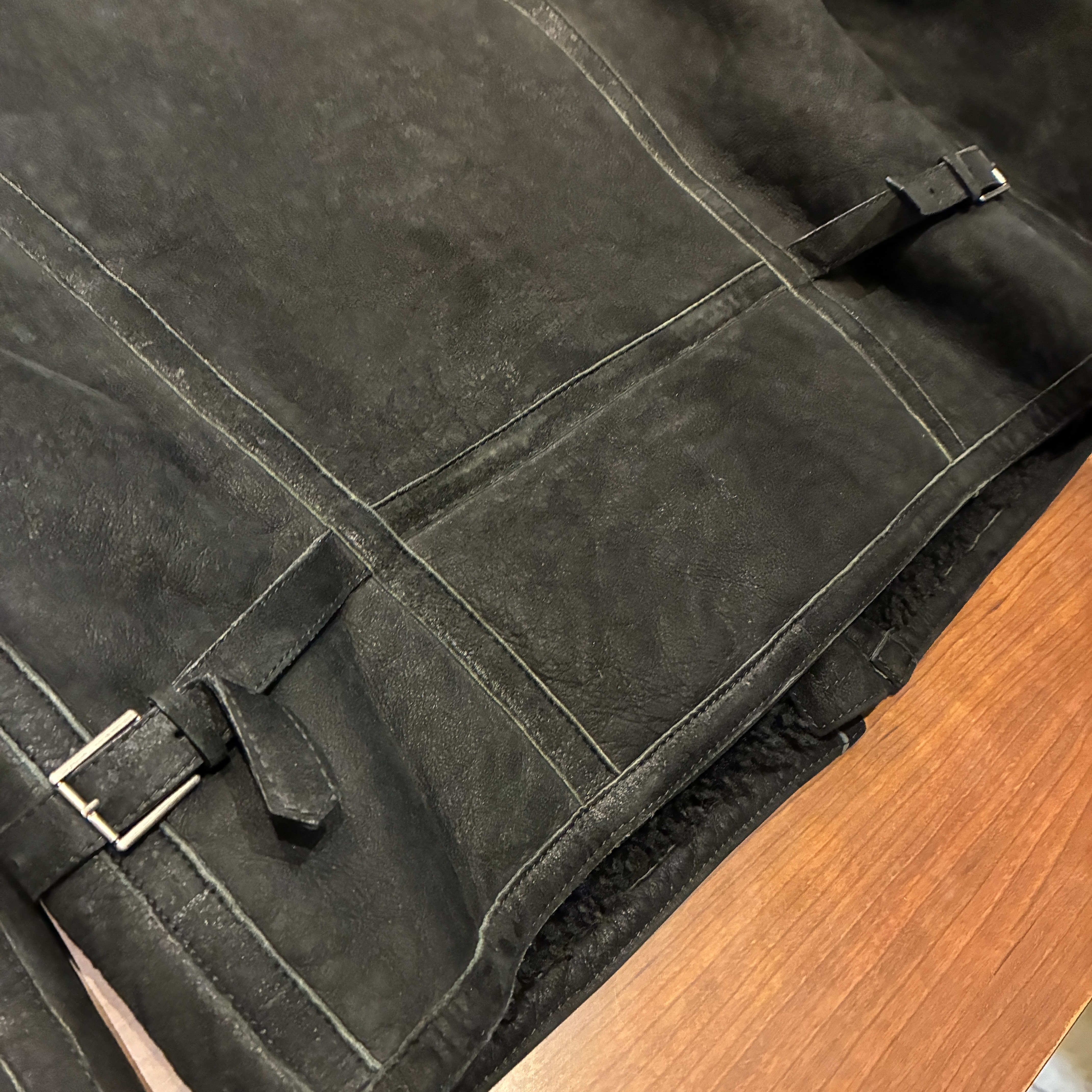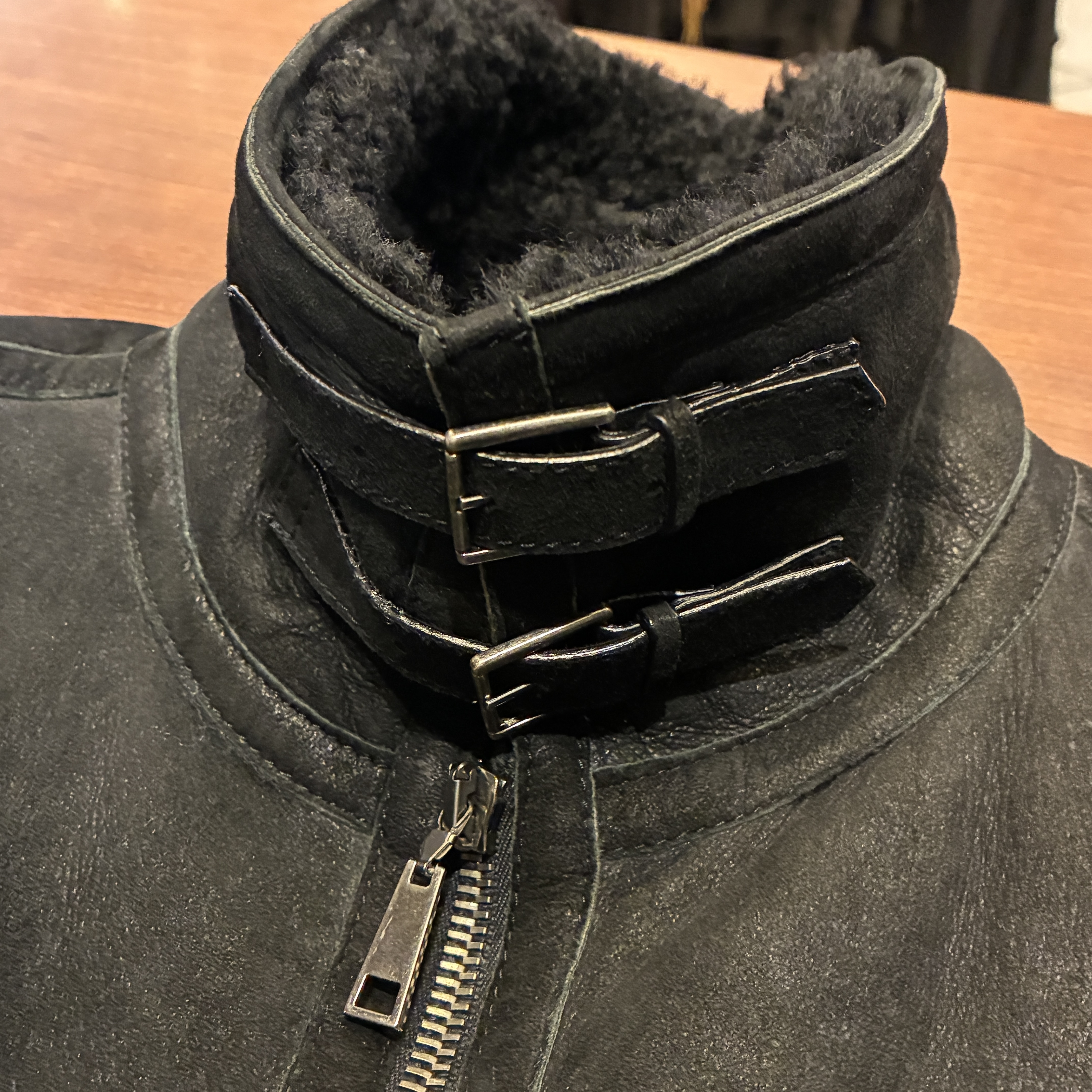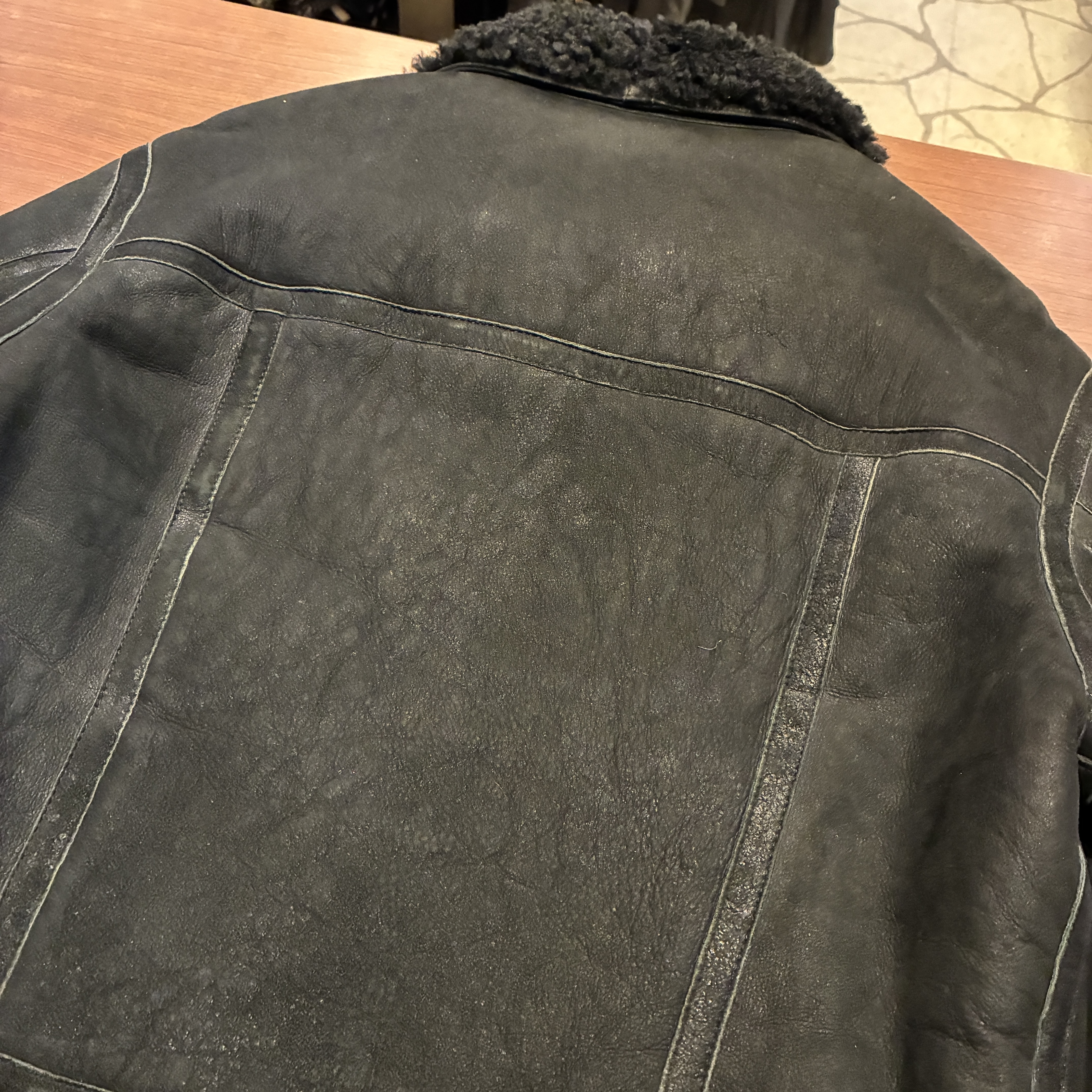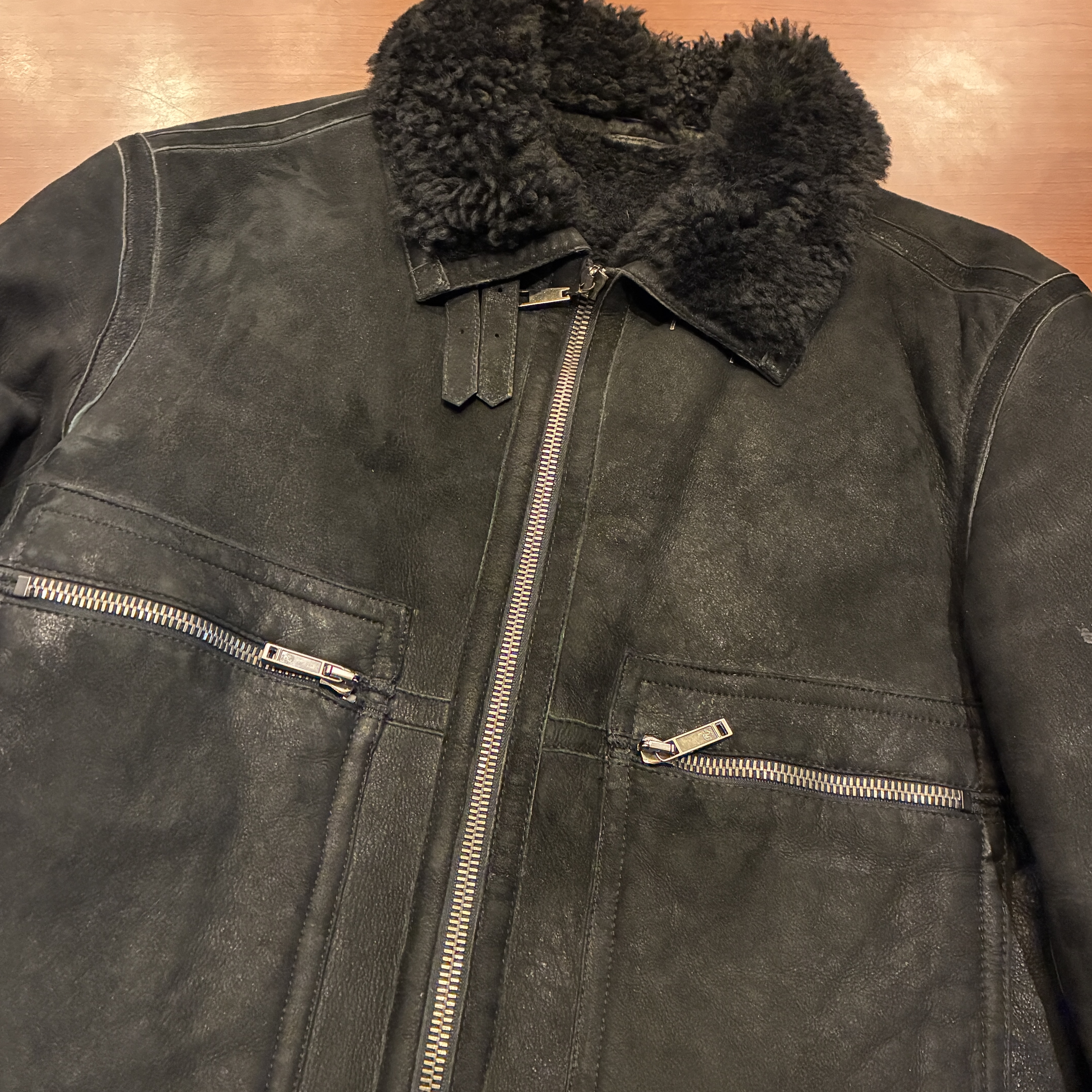 - ムートン素材特有の多少のシミやアタリ等がございますが目立つダメージ等は無く、まだまだ問題無く着用していただける状態です。