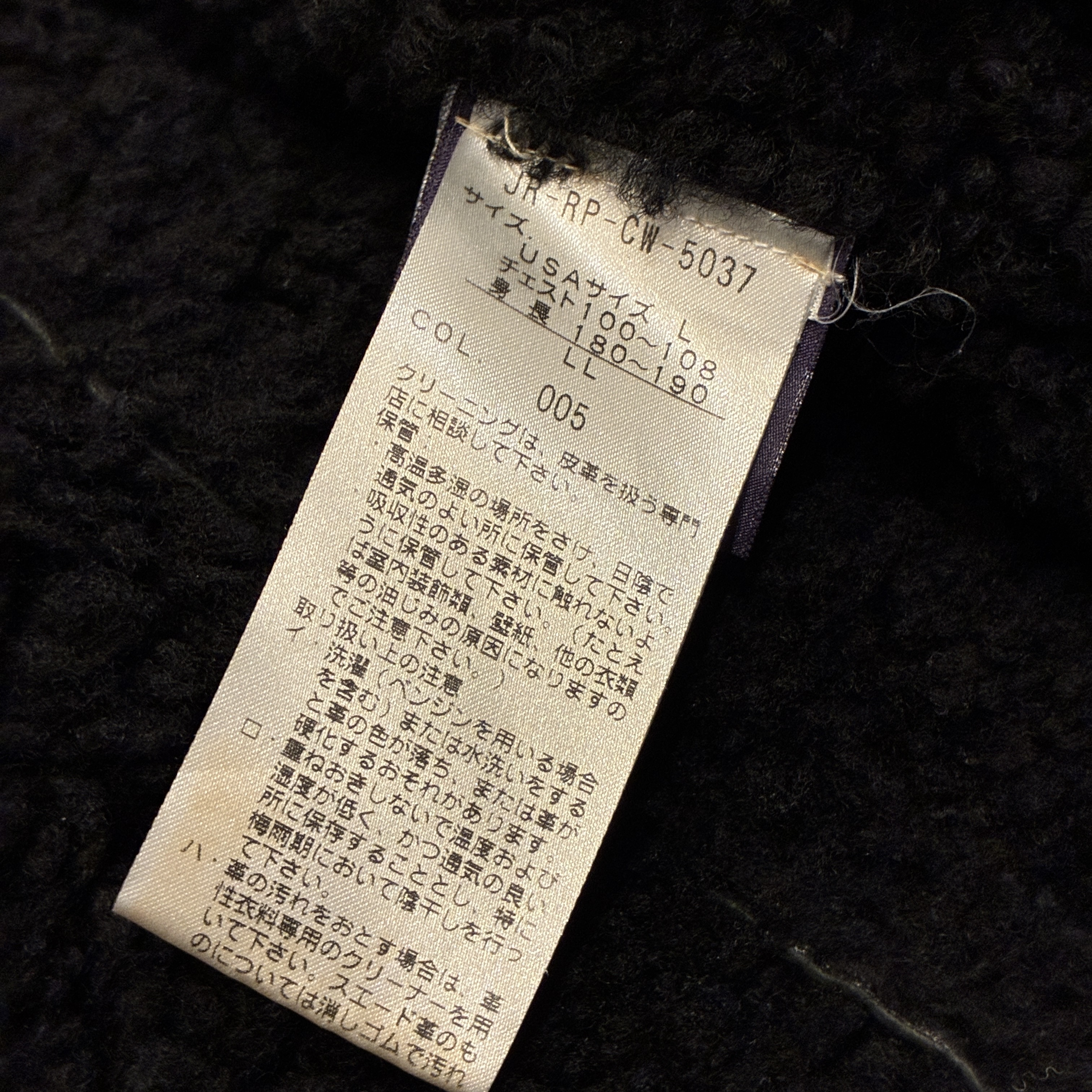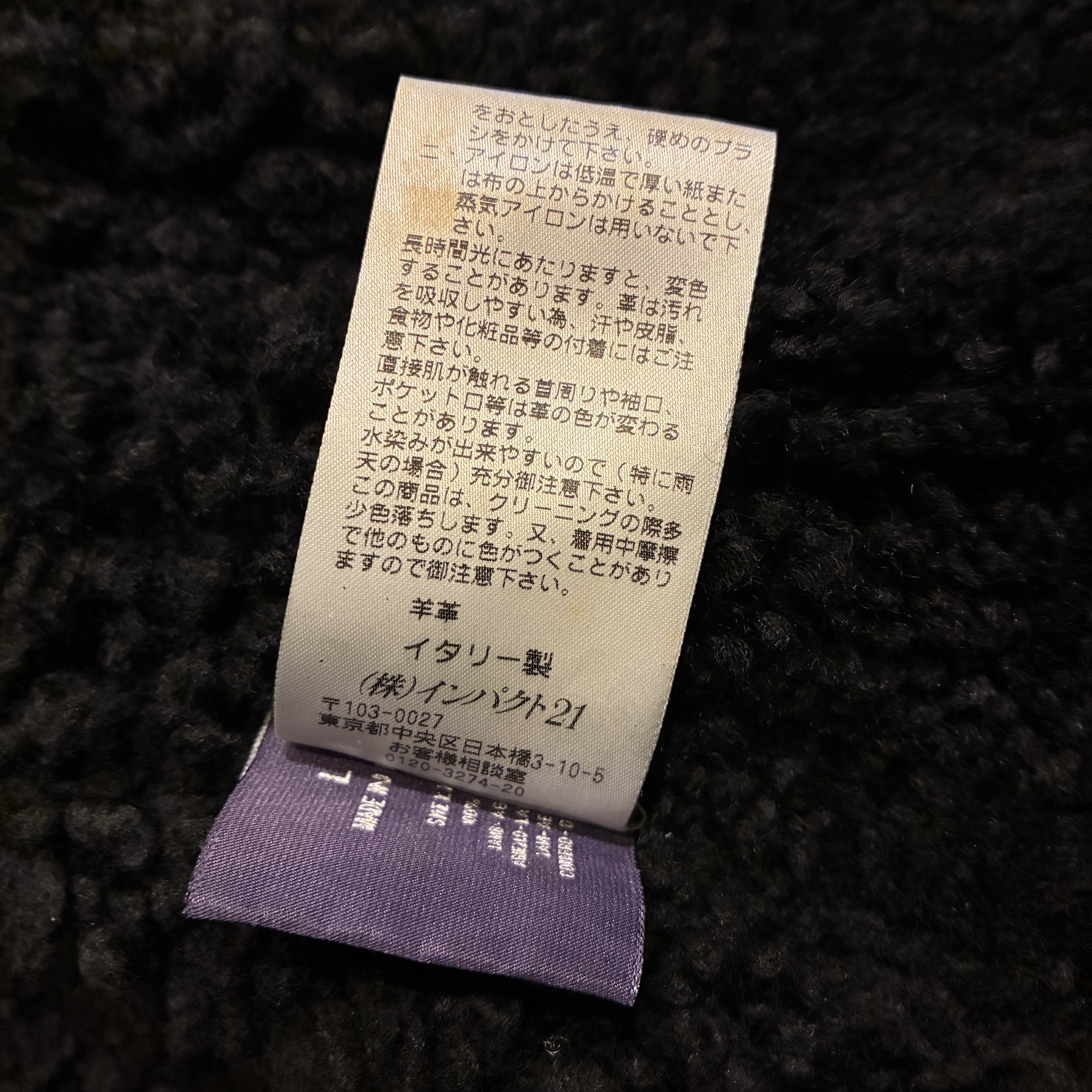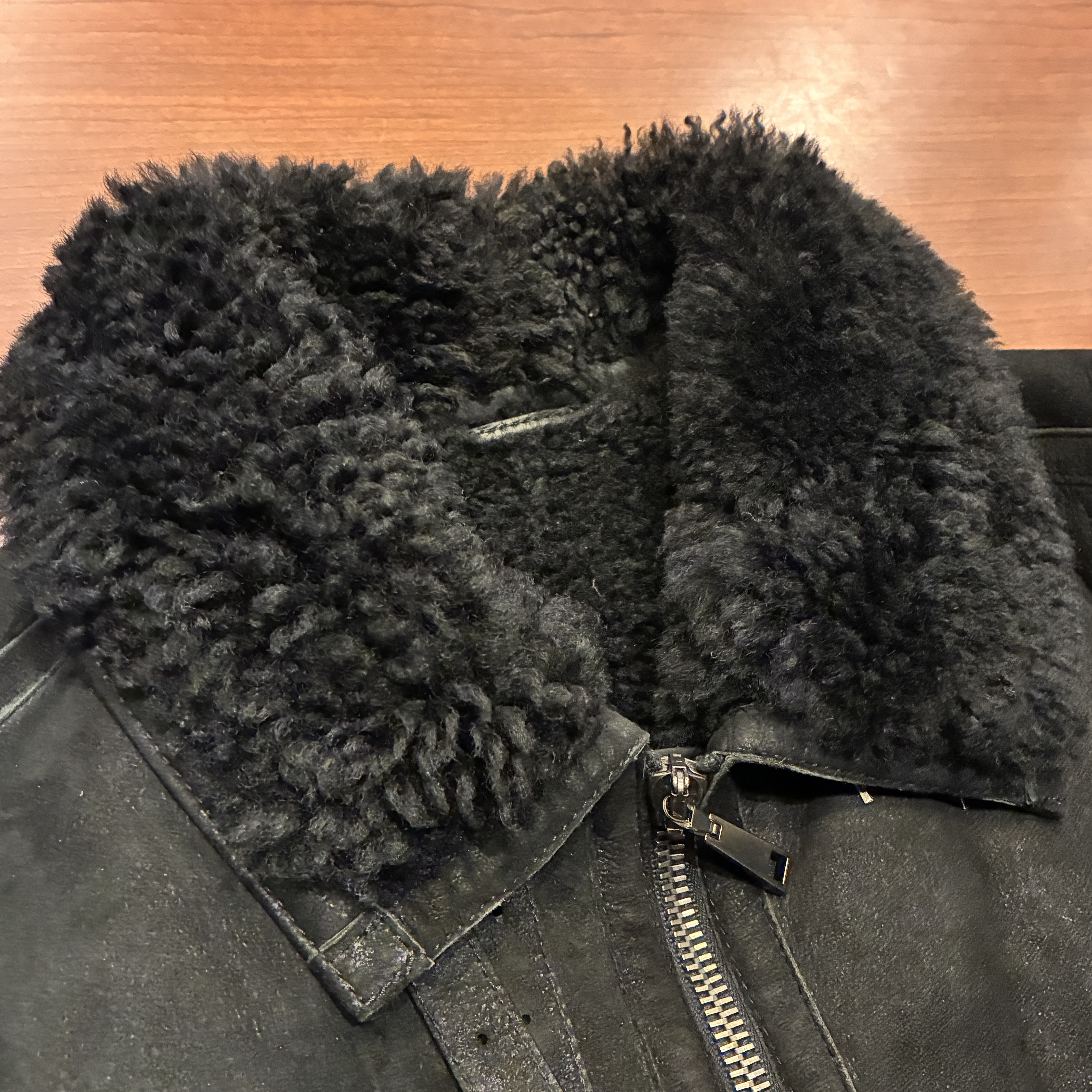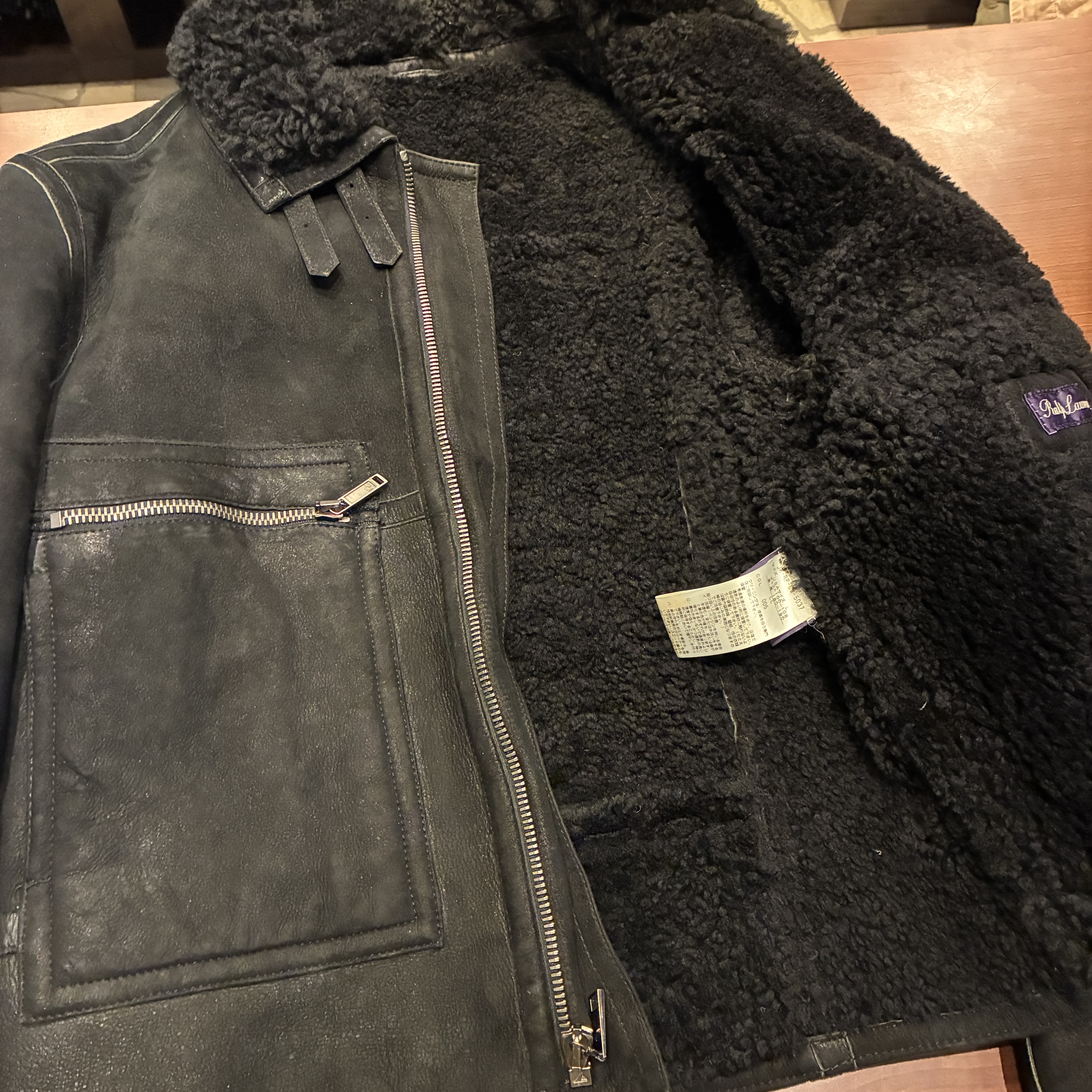 - ムートン素材特有の多少のシミやアタリ等がございますが目立つダメージ等は無く、まだまだ問題無く着用していただける状態です。