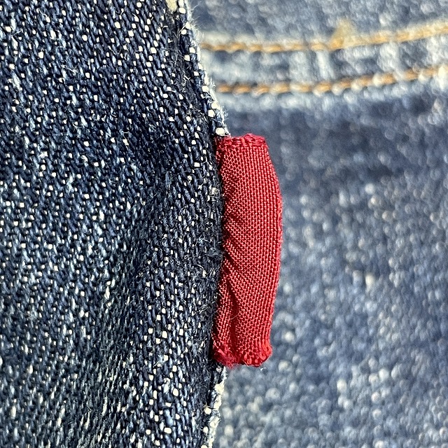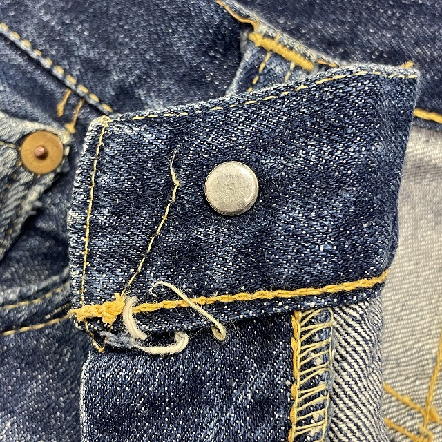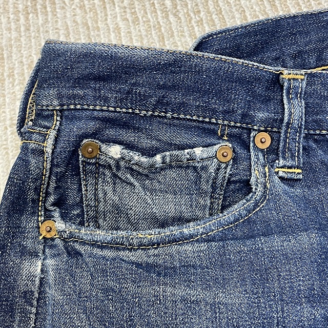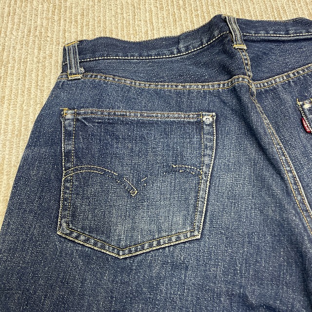 ポケット裏リベット銅色、コインポケット耳無し、フロントボタン通常R、太幅ベルトループ(約1.3㎝)、