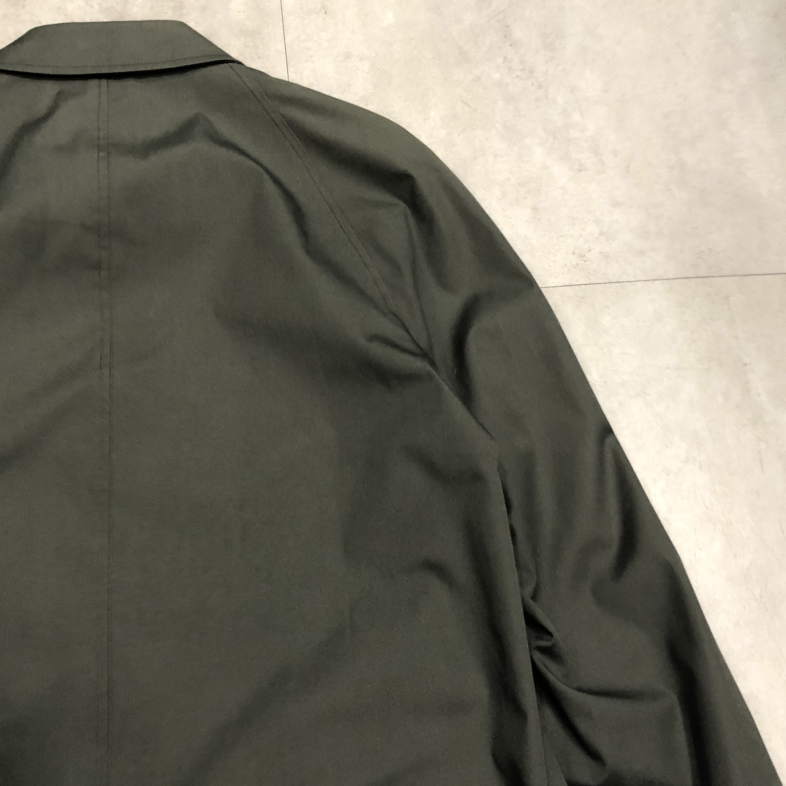 ラグランの可動域の広さと、セットインの端正さ。その“間”を取った設計です。肩の落ち方が自然で、着たときのAラインが非常に美しい。クラシックでありながらどこかモダン。この絶妙なバランスこそ、このコートの最大の魅力です。