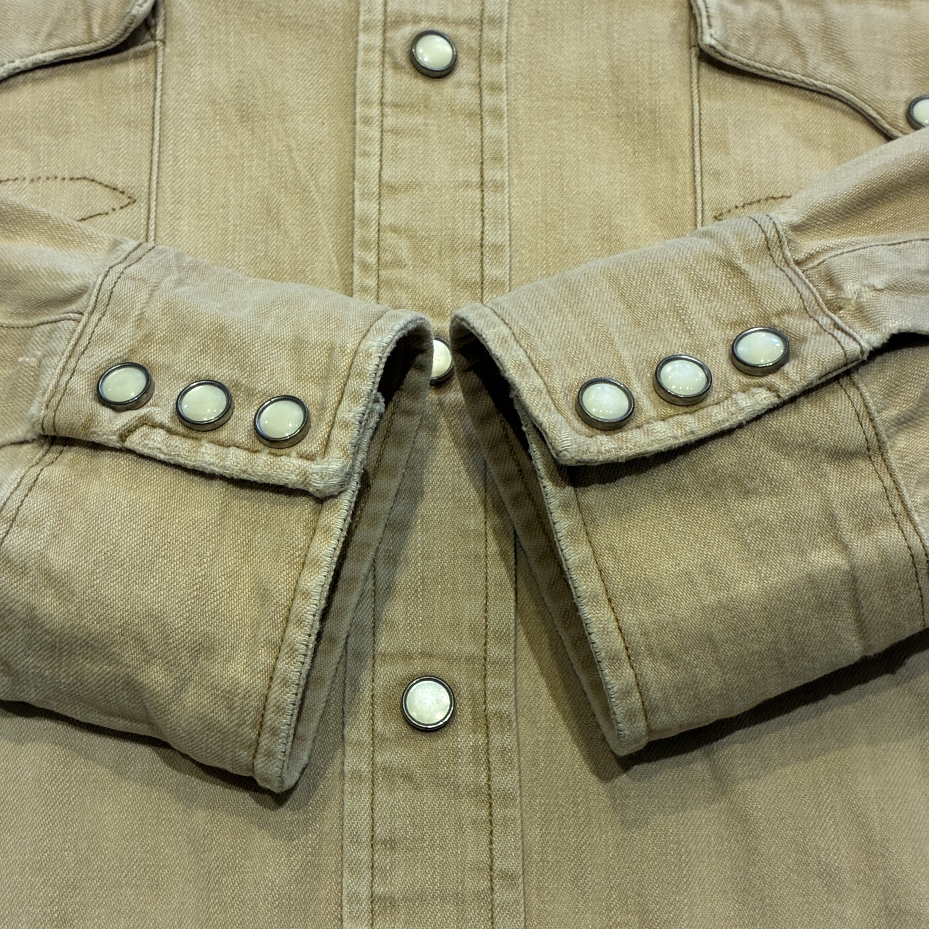 ポケットの付け根に画像の様な細かなダメージがございますが、その他に大きなダメージ等は無く、古着慣れされた方でしたらまだまだ着用していただける状態です。