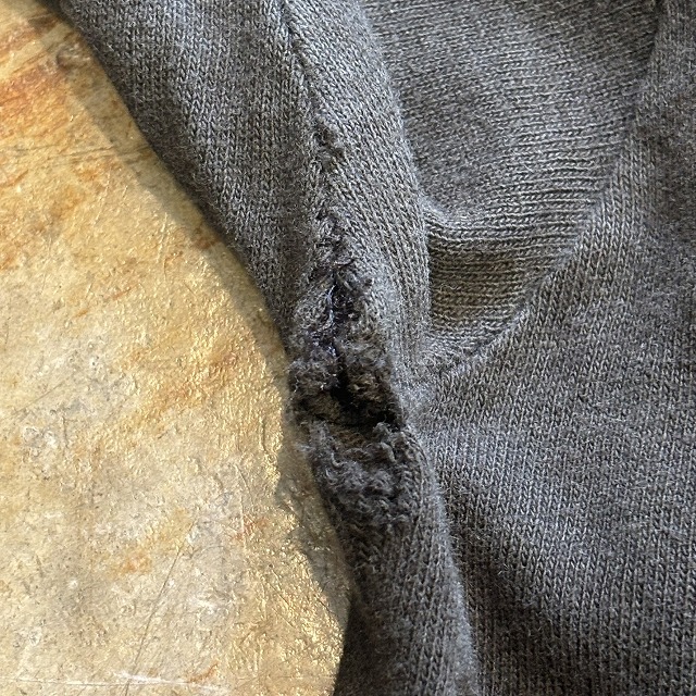 - 右脇下のステッチ抜けによる破れ、所々に画像の様な破れやダメージがみられます。