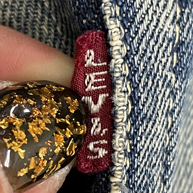 ポケット裏リベット銅色、コインポケット耳無し、フロントボタン通常R、太幅ベルトループ(約1.3㎝)、