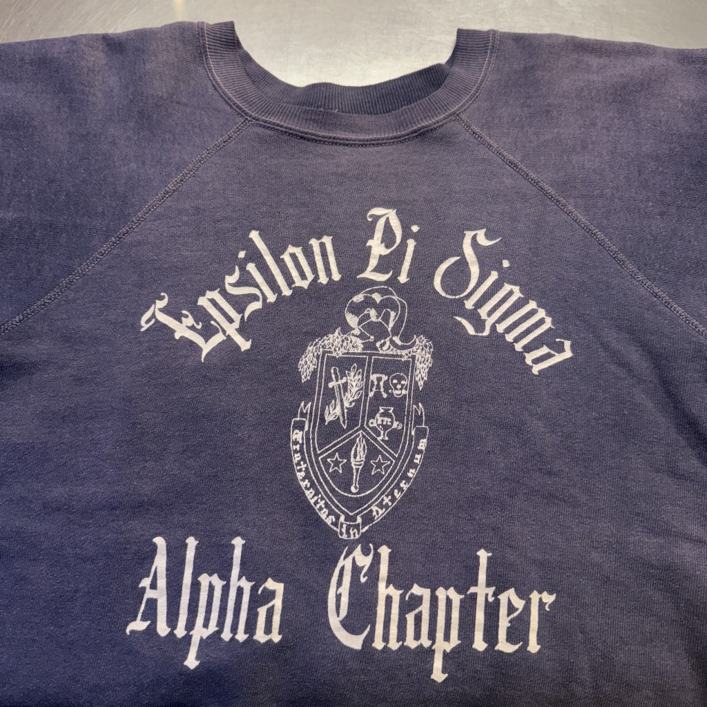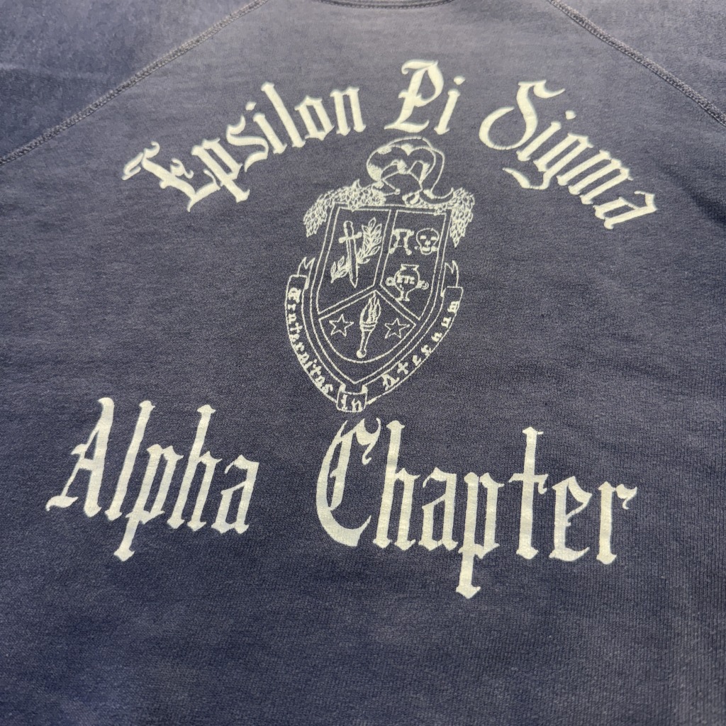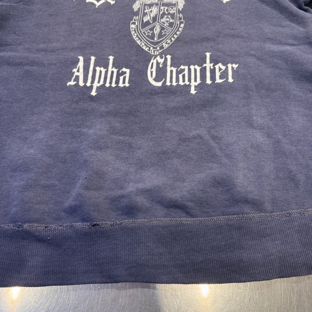 「OLD ENGLISH、三段プリント、ネイビーフェード」