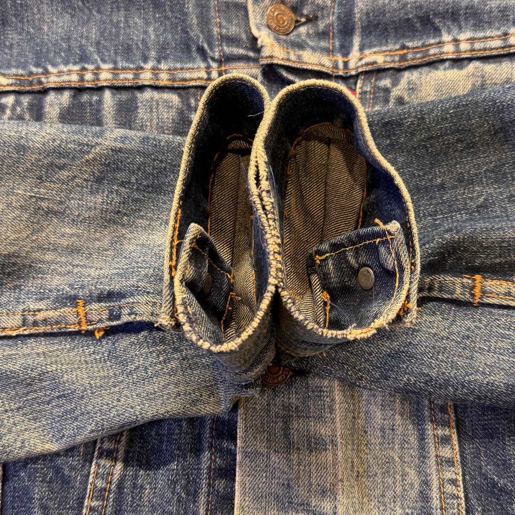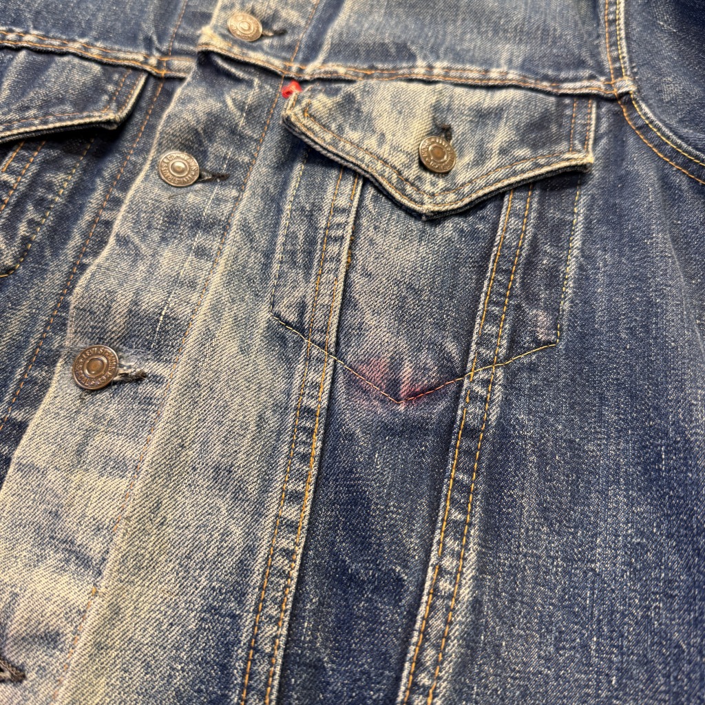 - 一部汚れやワッペン跡など年代特有の着用感が御座いますが、ヴィンテージに慣れている方でしたら問題なく着用可能な状態です。
