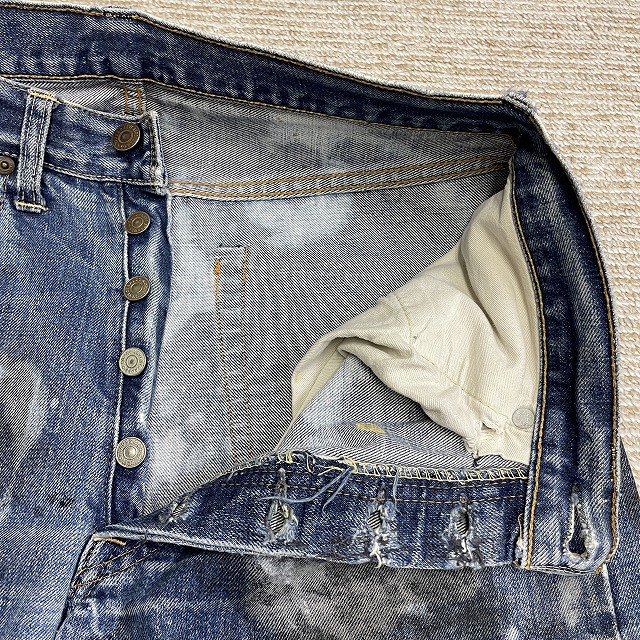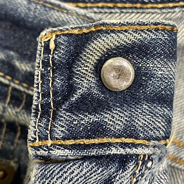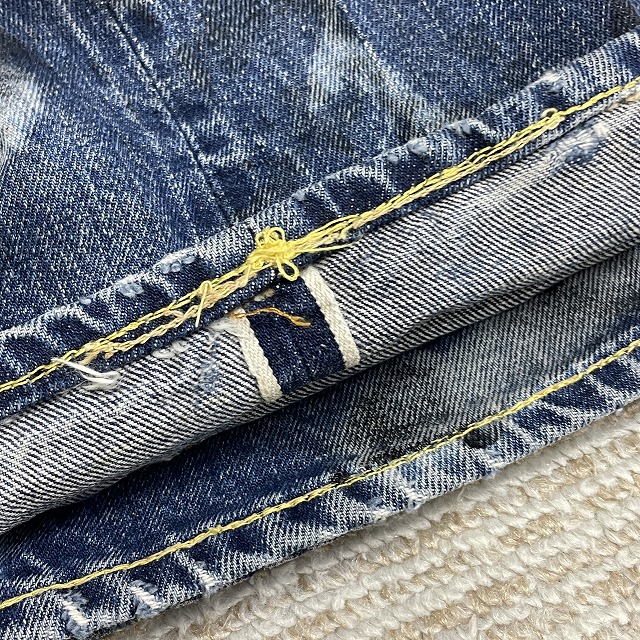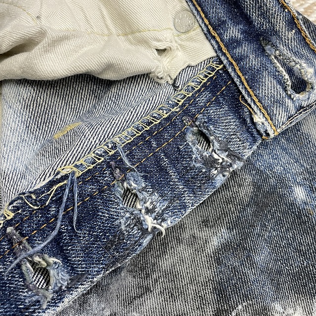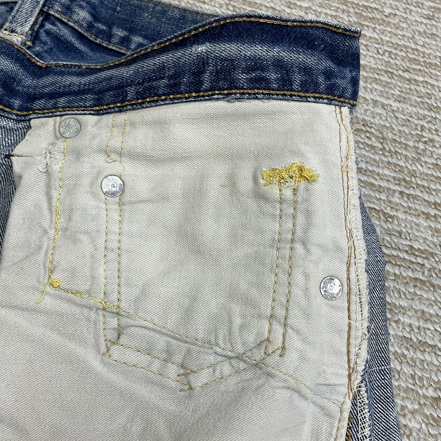 - 画像のように、コインポケットのリベットが欠損しており、ボタンホール、股、裾等にリペアやリステッチがございます。