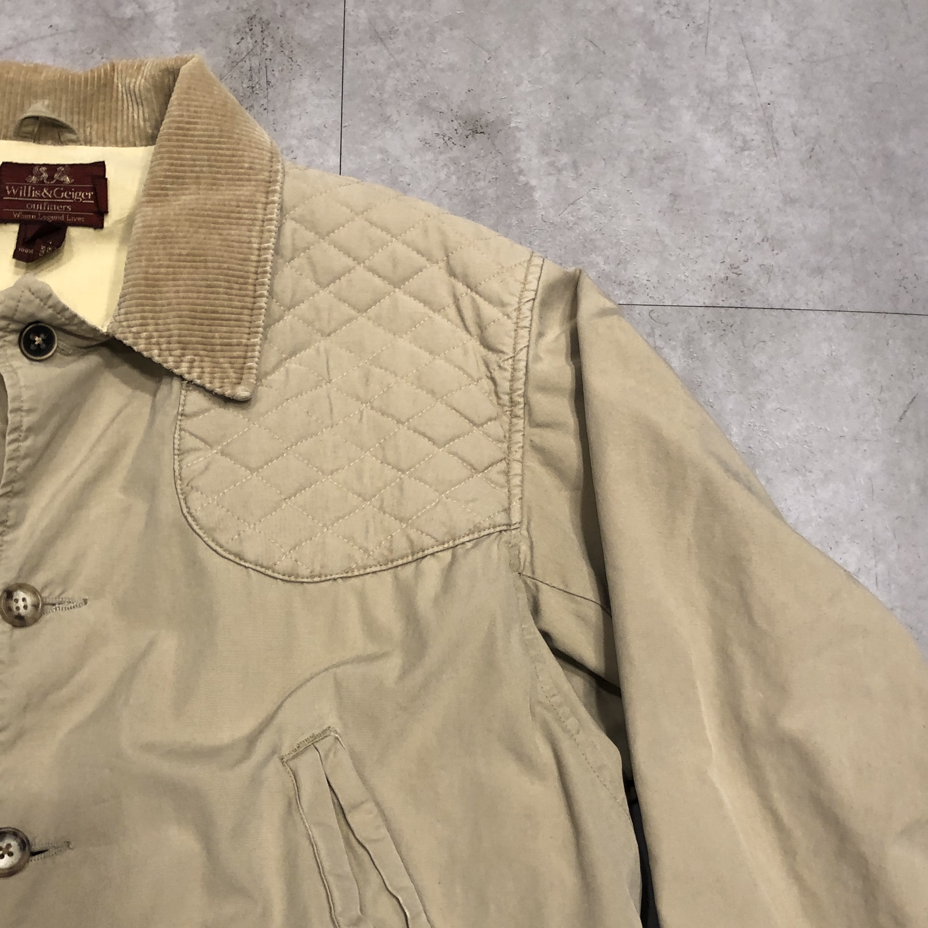 柔らかくもコシのあるコットンシェルに、コーデュロイ襟、そして肩のキルティング補強パッチ。
