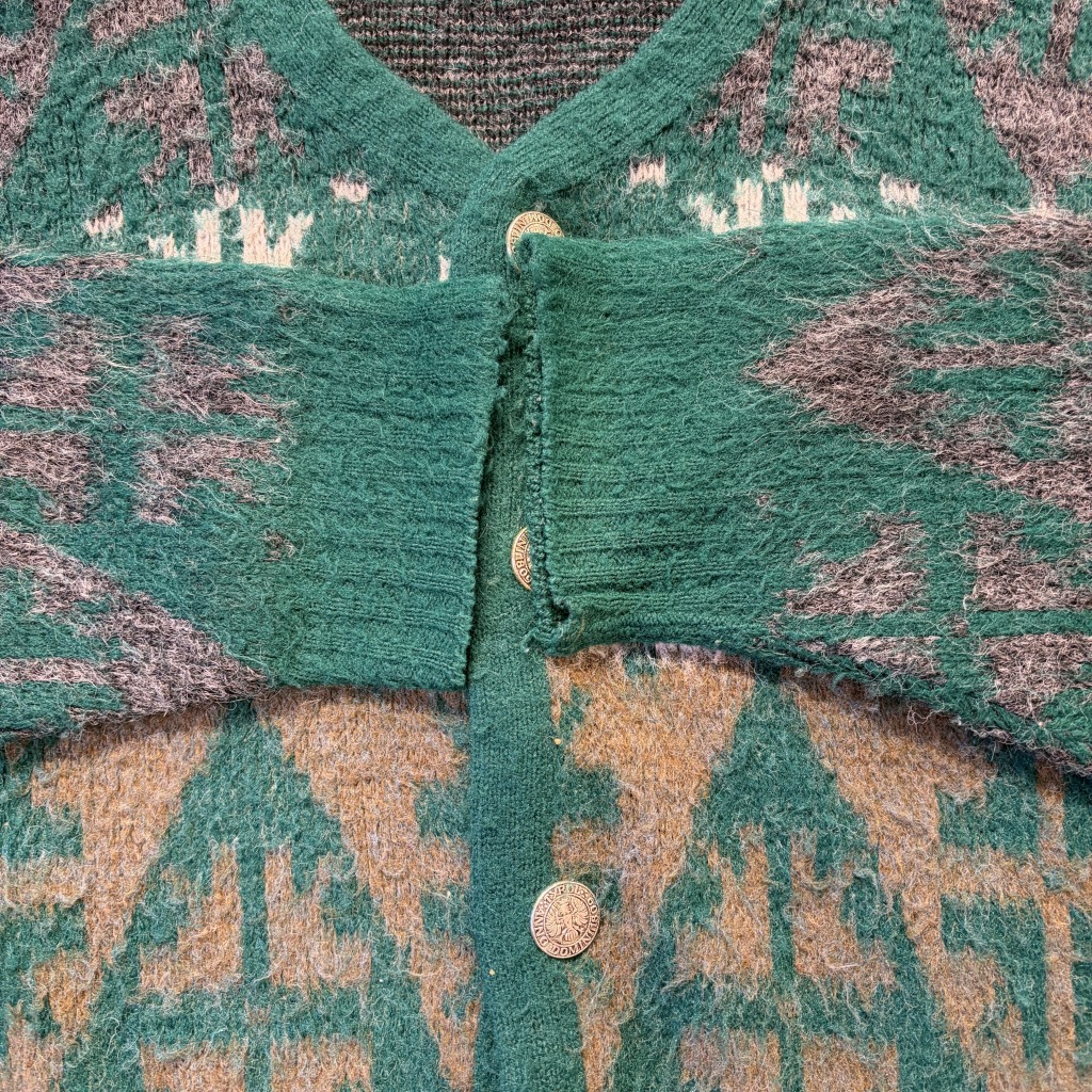 - ボタン部分のリペアやスレや毛羽立ち等があり全体的に着用感ございますが目立った汚れは無くまだまだ問題無く着用可能な状態です。