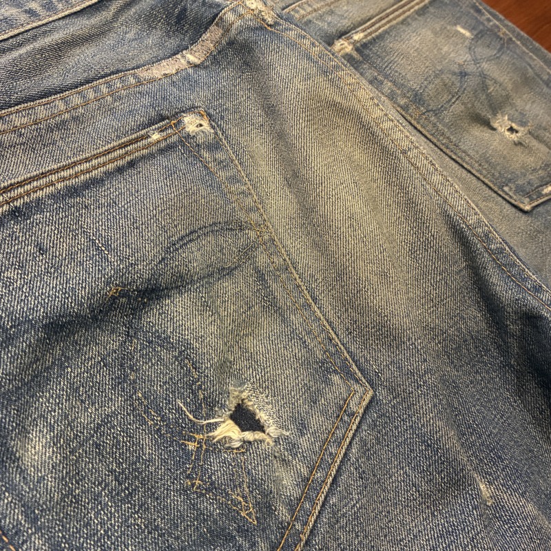 加工箇所に擦れによる穴が数ヶ所見られますが他に目立つダメージ等は無く、まだまだ問題無く着用していただける状態です。