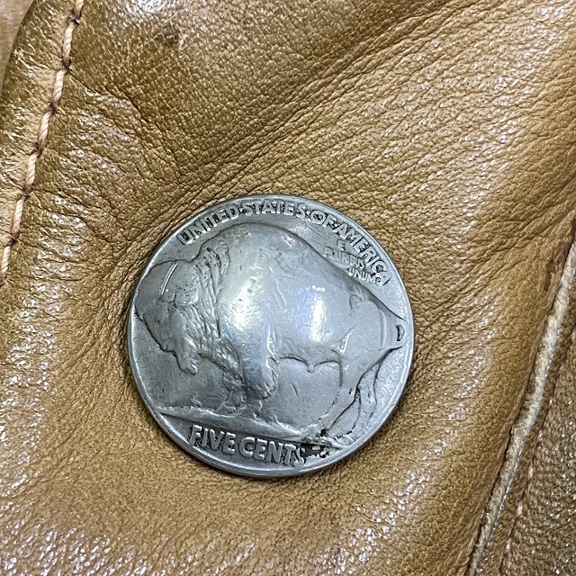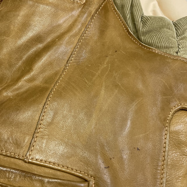 身頃両サイドにレザーの生地が足されており、身幅のリサイズが施されています。