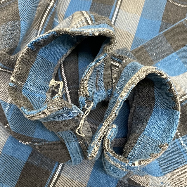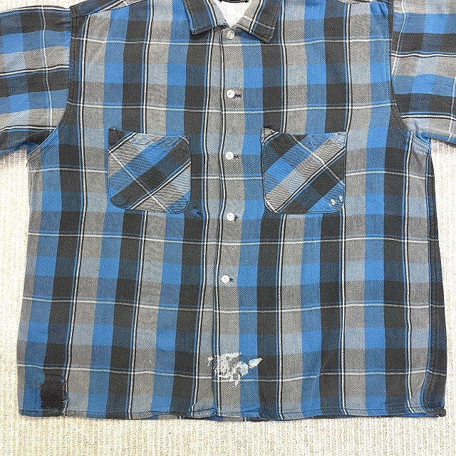 「ブルー×グレーチェック、ペンキ、サイズL」