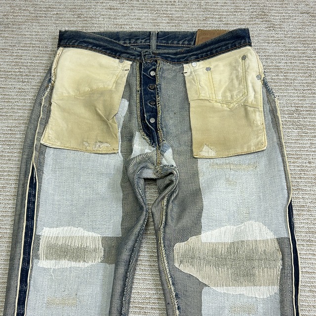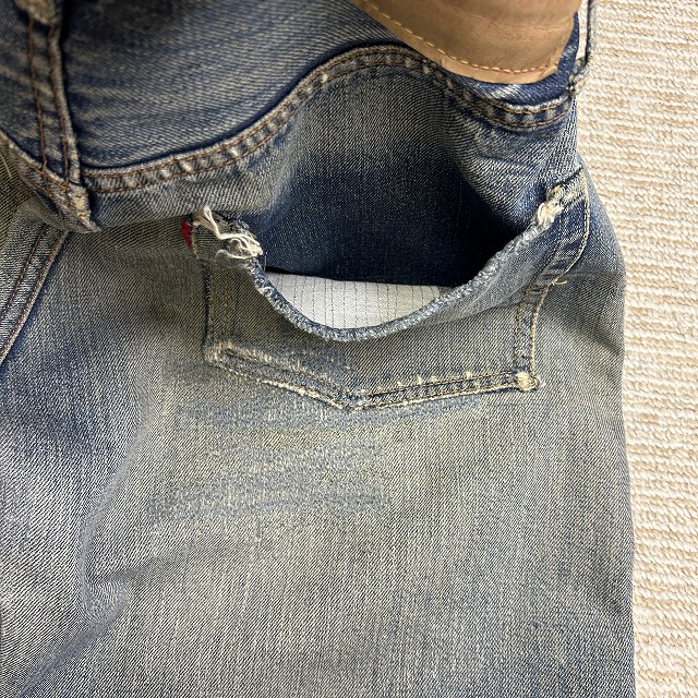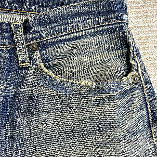 「Vステッチ、ウェストシングル、ダメージ&リペア、実寸W32 L28」