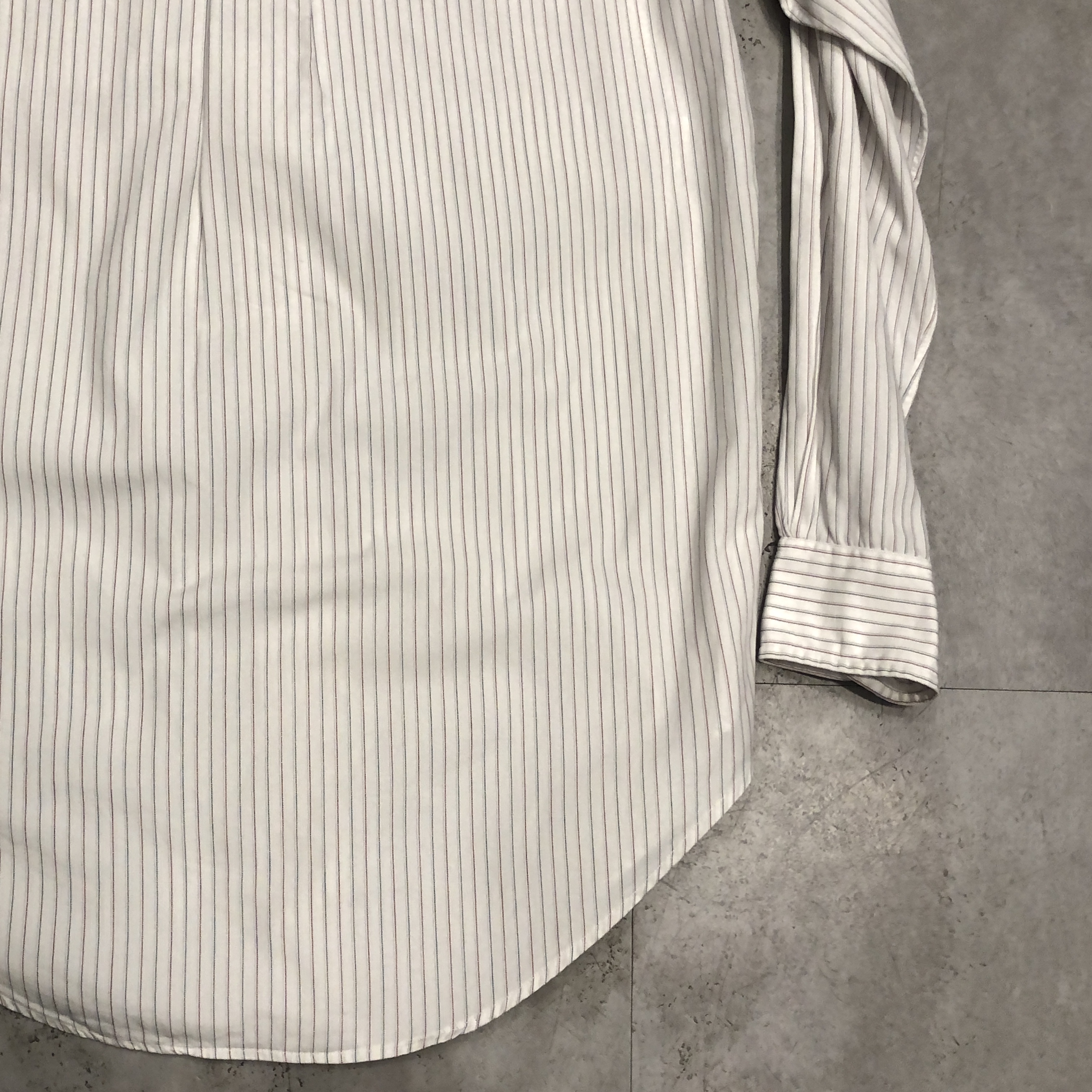 ホワイトのベースに走る繊細なストライプは、ドレスとワークの中間に位置する絶妙な表情。ブロード寄りのしなやかなコットン生地は肌触りが良く、通年で活躍する実用性も備えています。