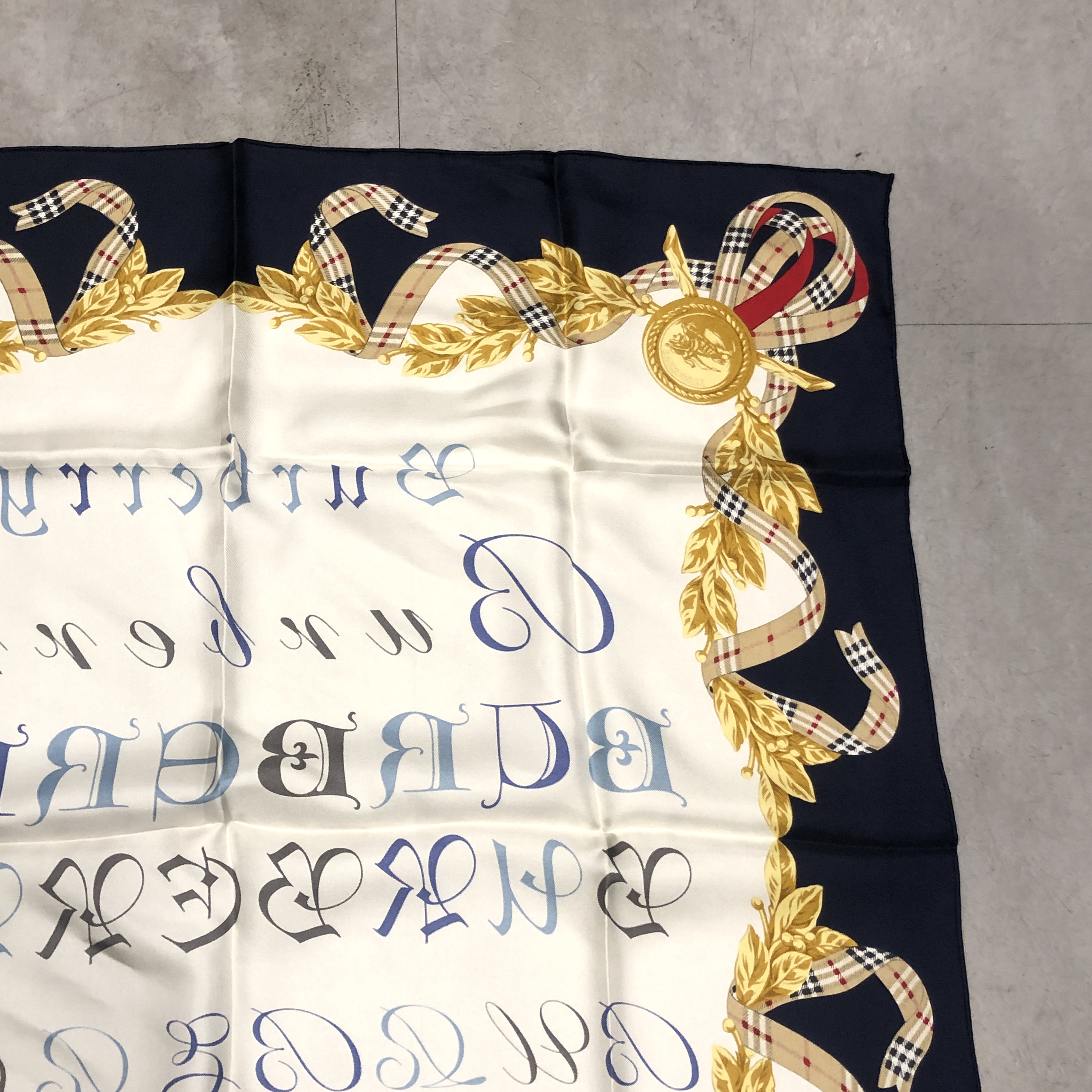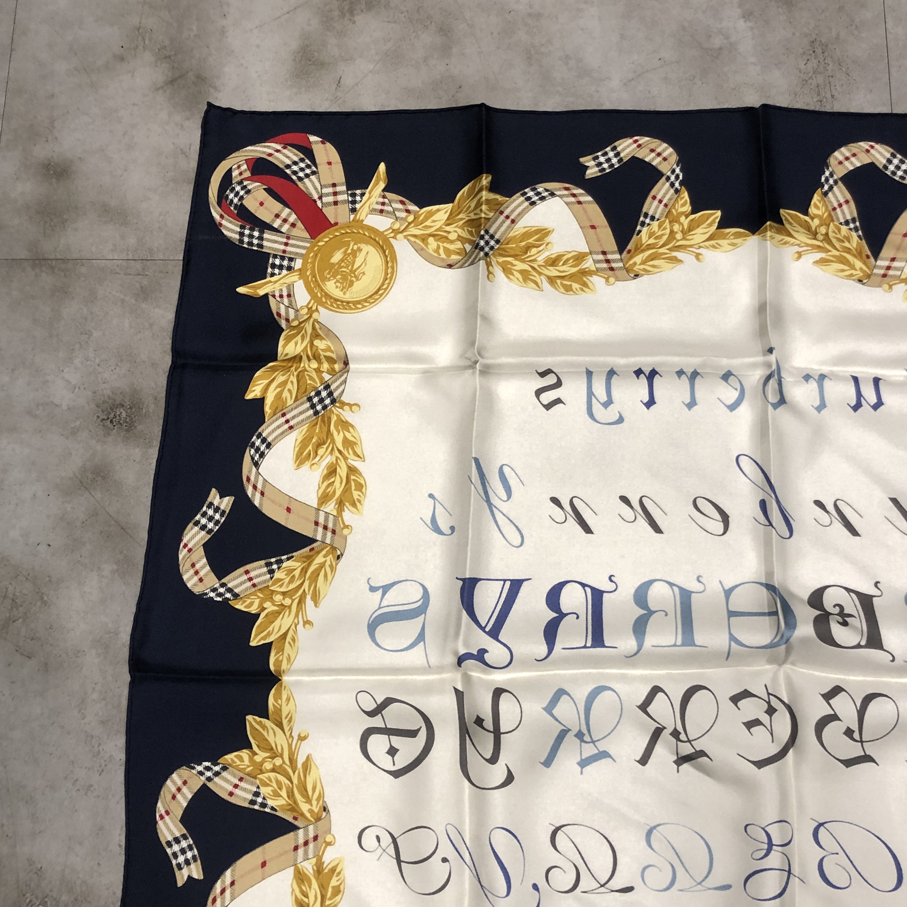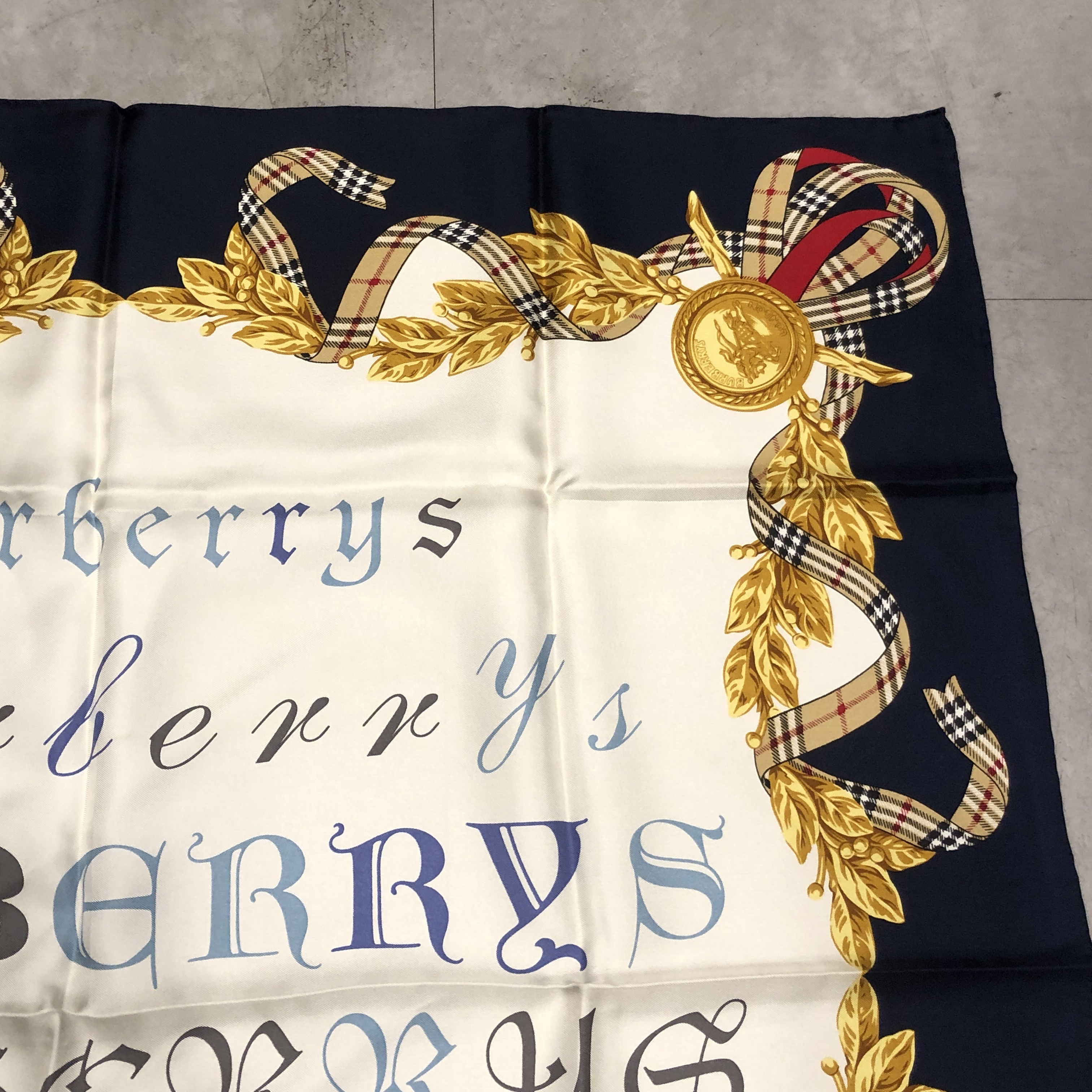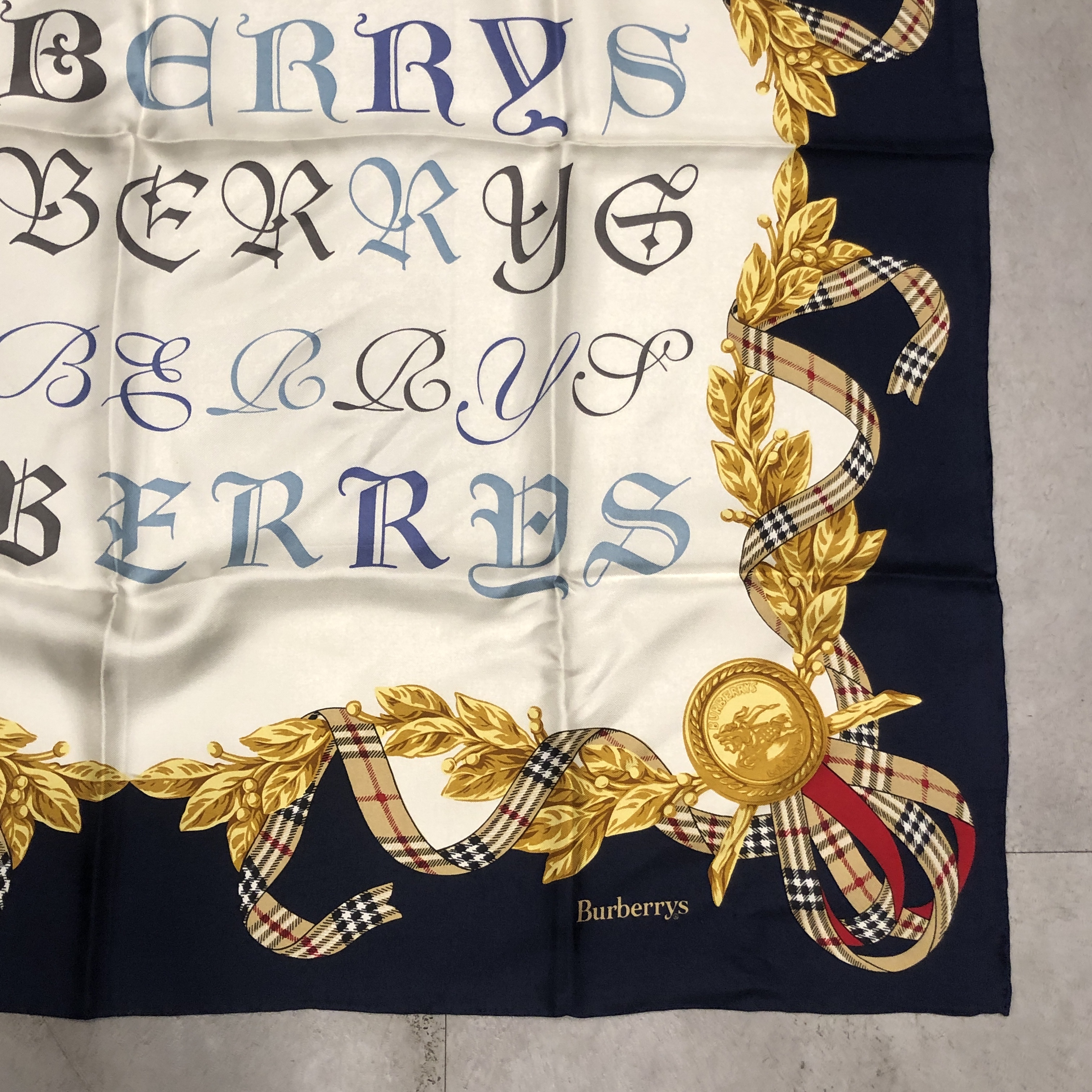 中央には多様な書体で表現された“BURBERRYS”ロゴ。