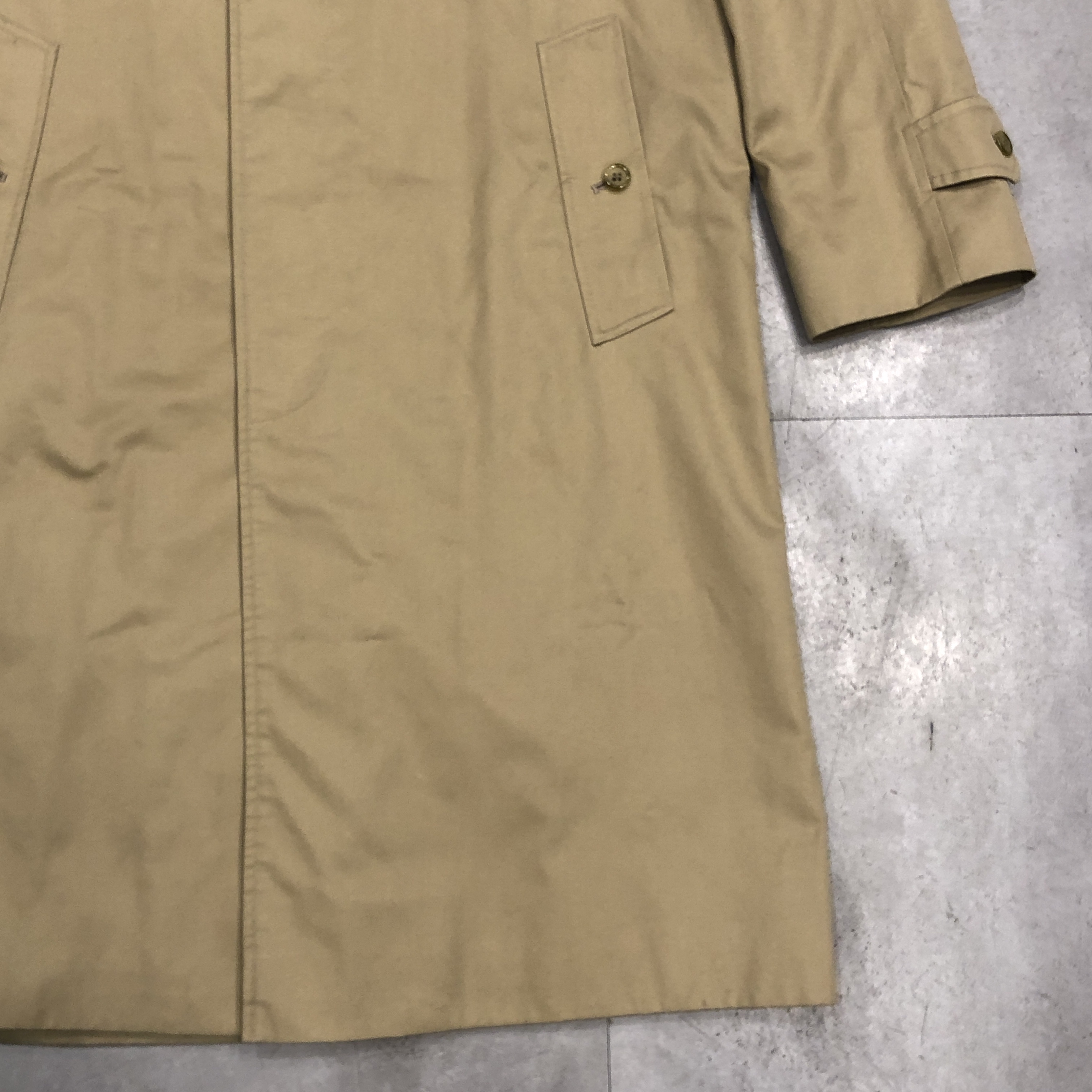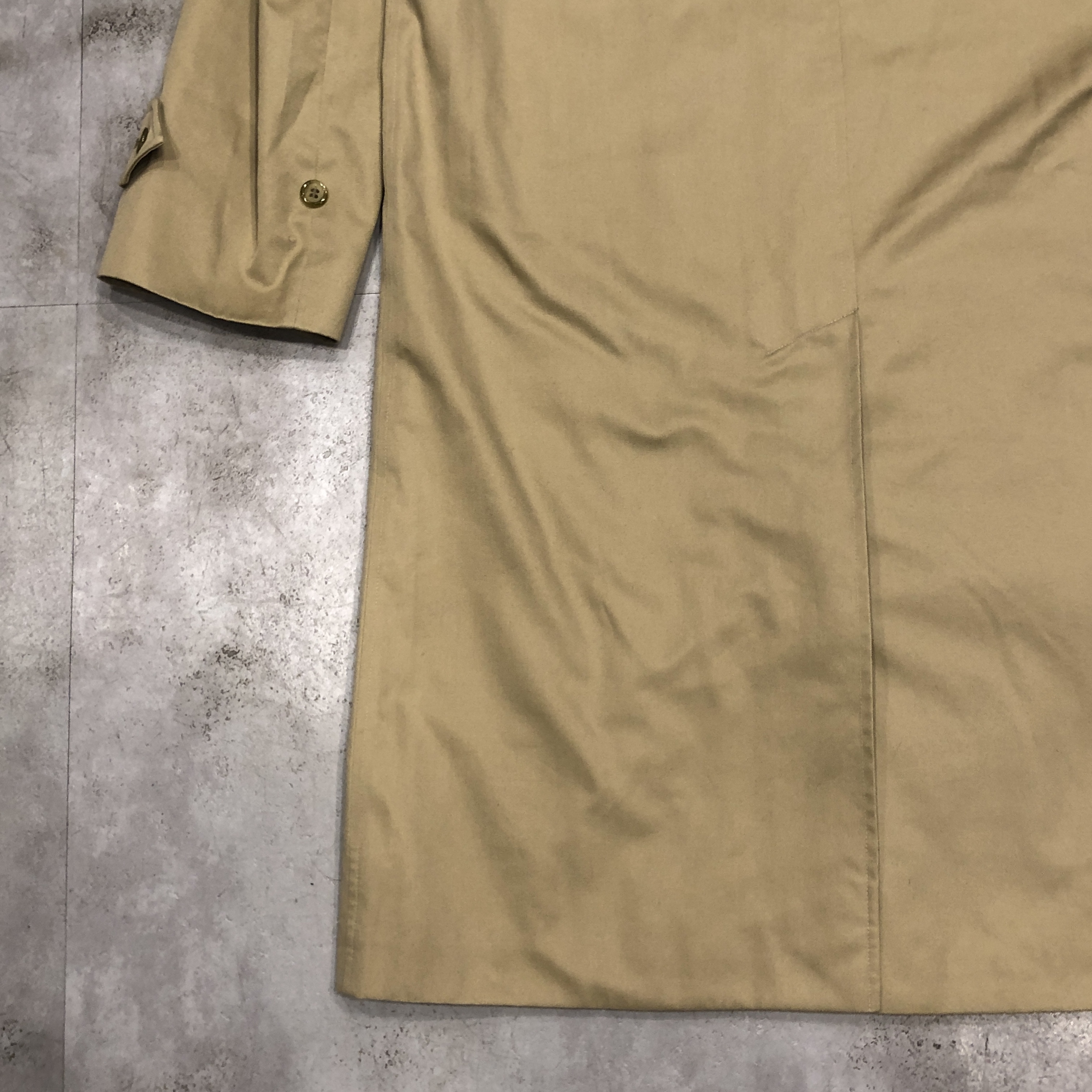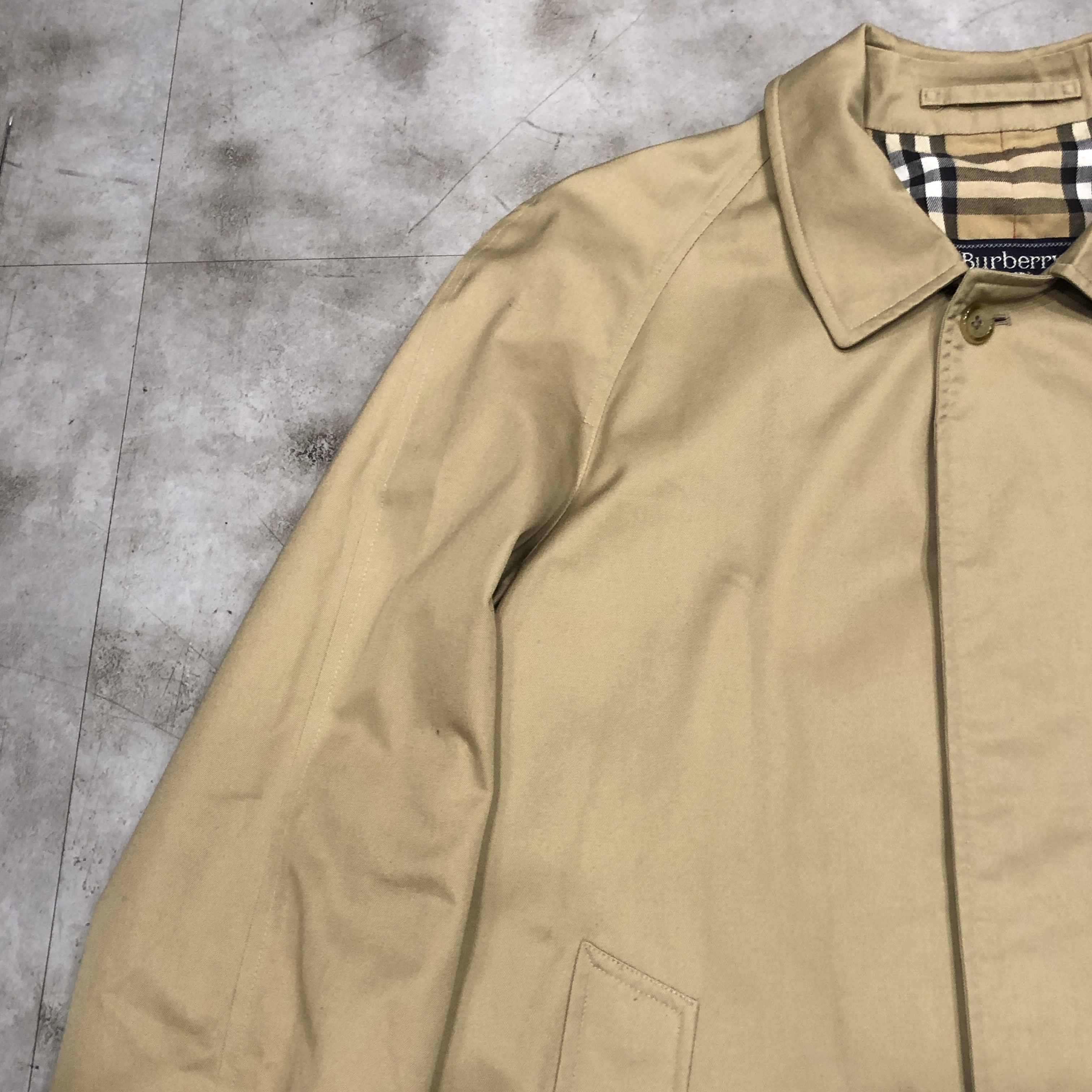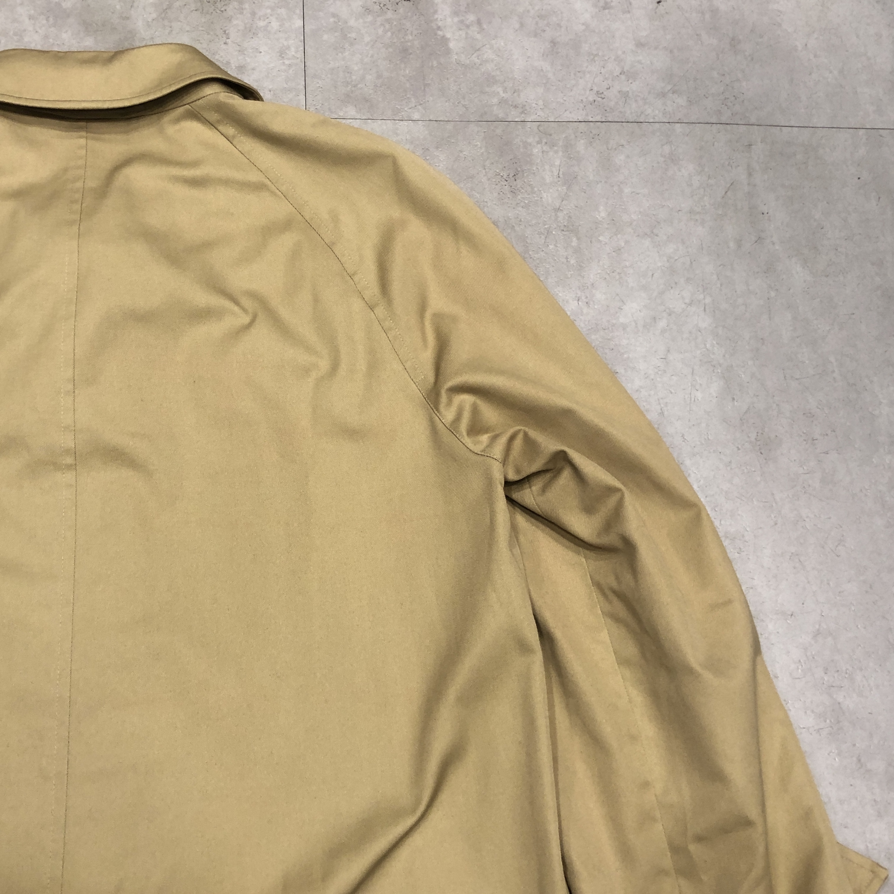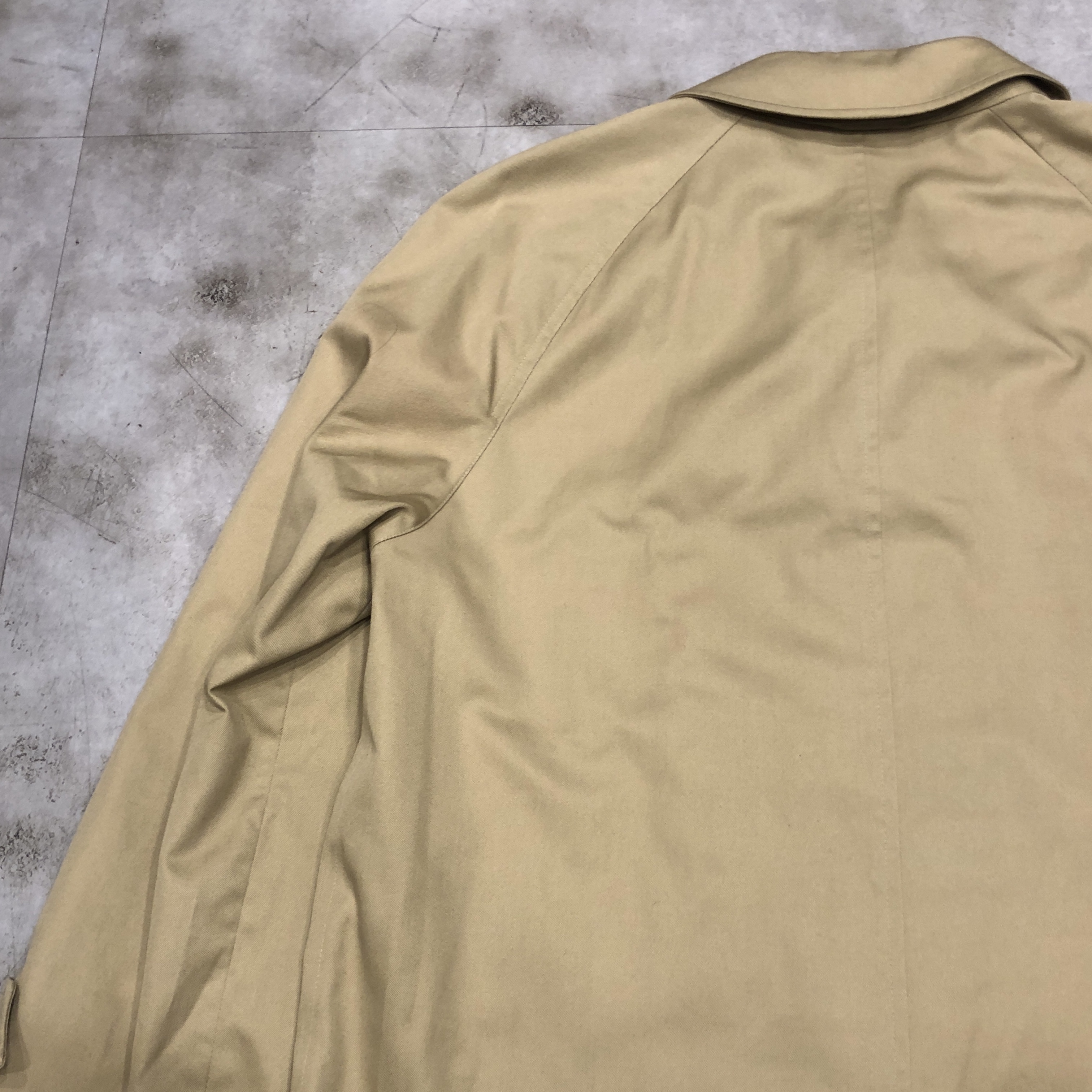 表面・裏地ともに経年による風合いを楽しめるコンディションで、“育てる楽しみ”も含めて味わえる一着です。肩肘張らず、カジュアルな日常着としても使える名品。バーバリーズ黄金期の空気を纏う、コレクション性の高い一枚をぜひお楽しみください。