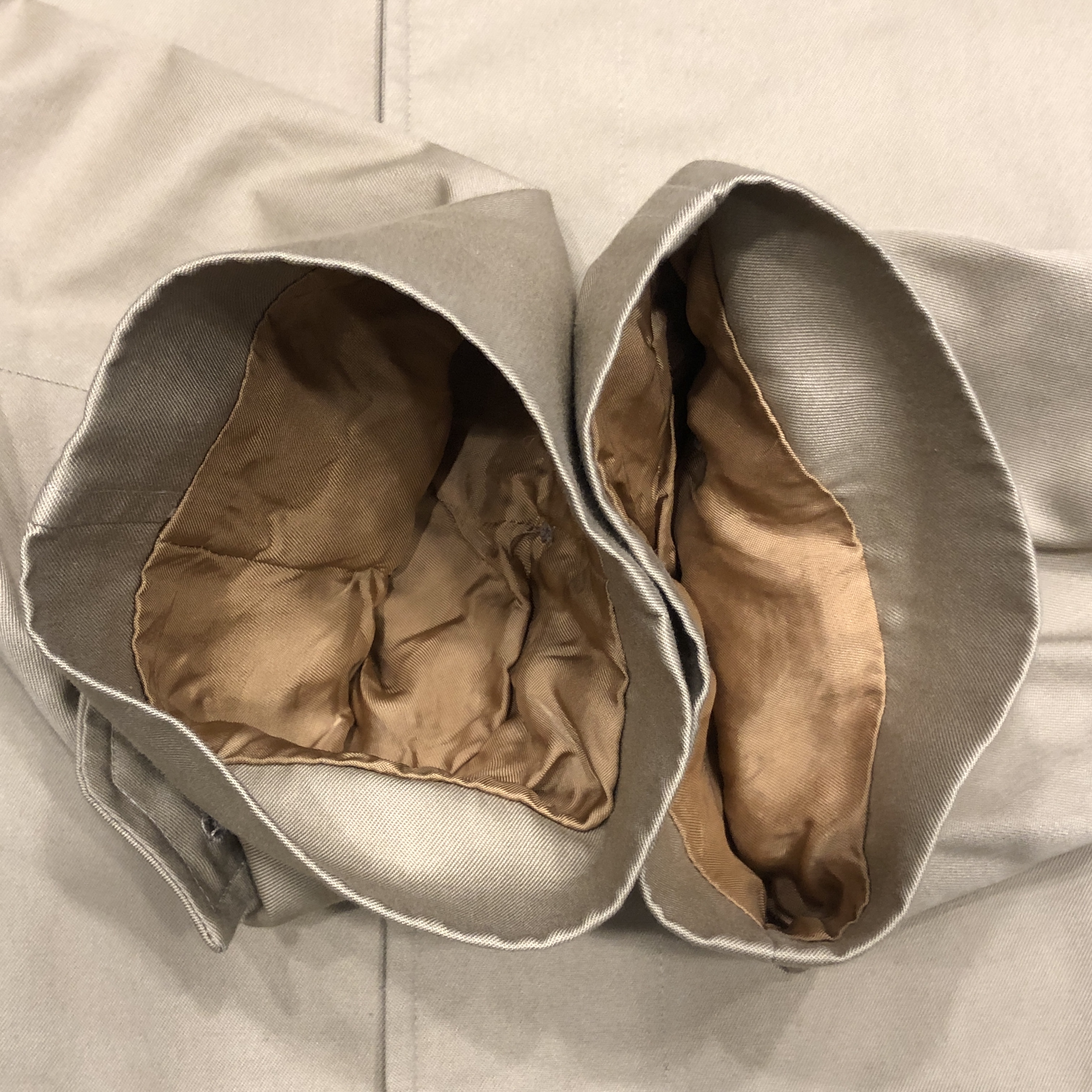 まず目を引くのは、高密度コットン・ポリの上質な艶と張り感。雨風をしっかりと弾く撥水性のあるこの素材は、Burberryが誇る伝統的な生地。半世紀以上の時を経てもなお、ハリとコシを保つその品質の高さに驚かされます。