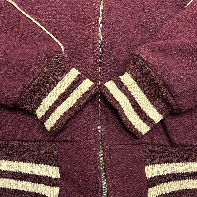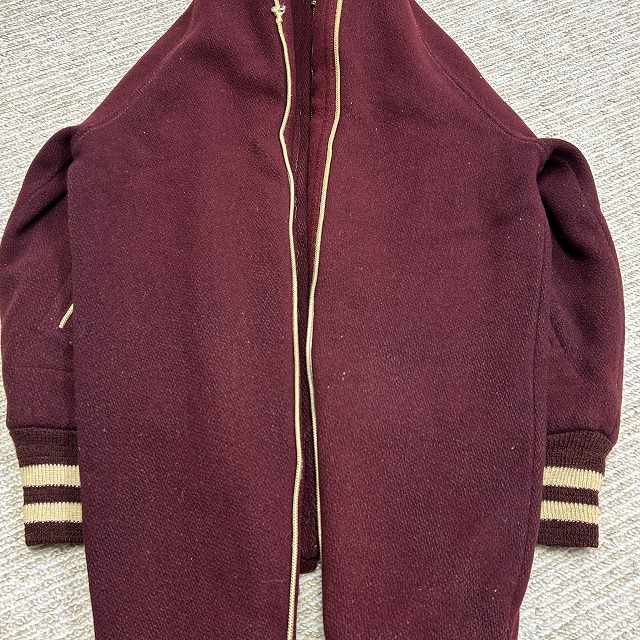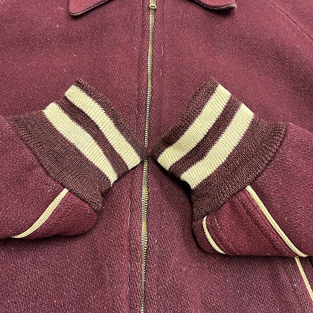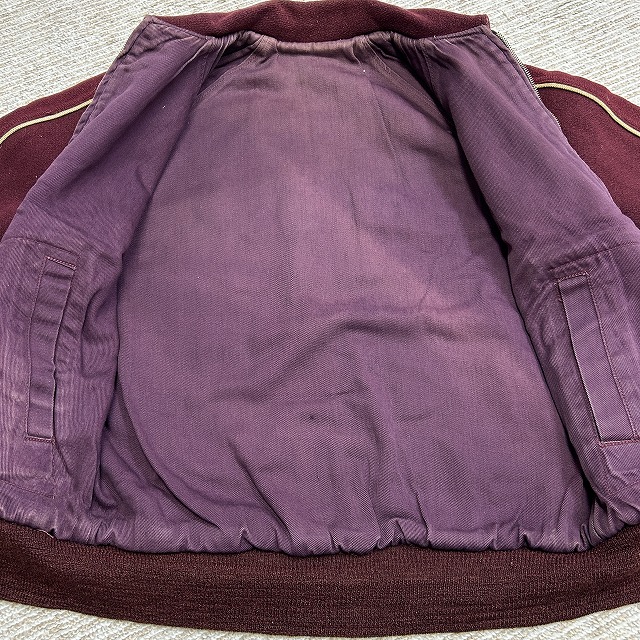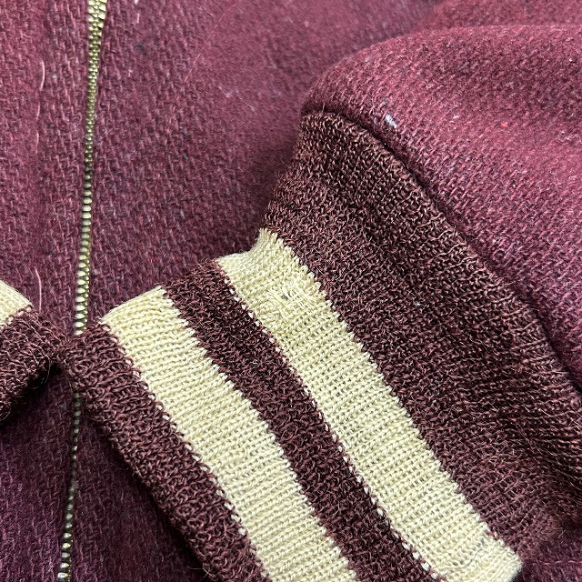 - 画像の様に、右袖のパイピングに傷、ホツレや袖と裾野リブに小穴がございます。