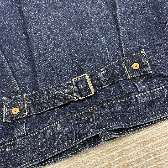 - 画像のように、汚れ、スレ、キズ、アタリがあり、左胸ポケットのリベットと裏側の受けが欠損している箇所がございます。