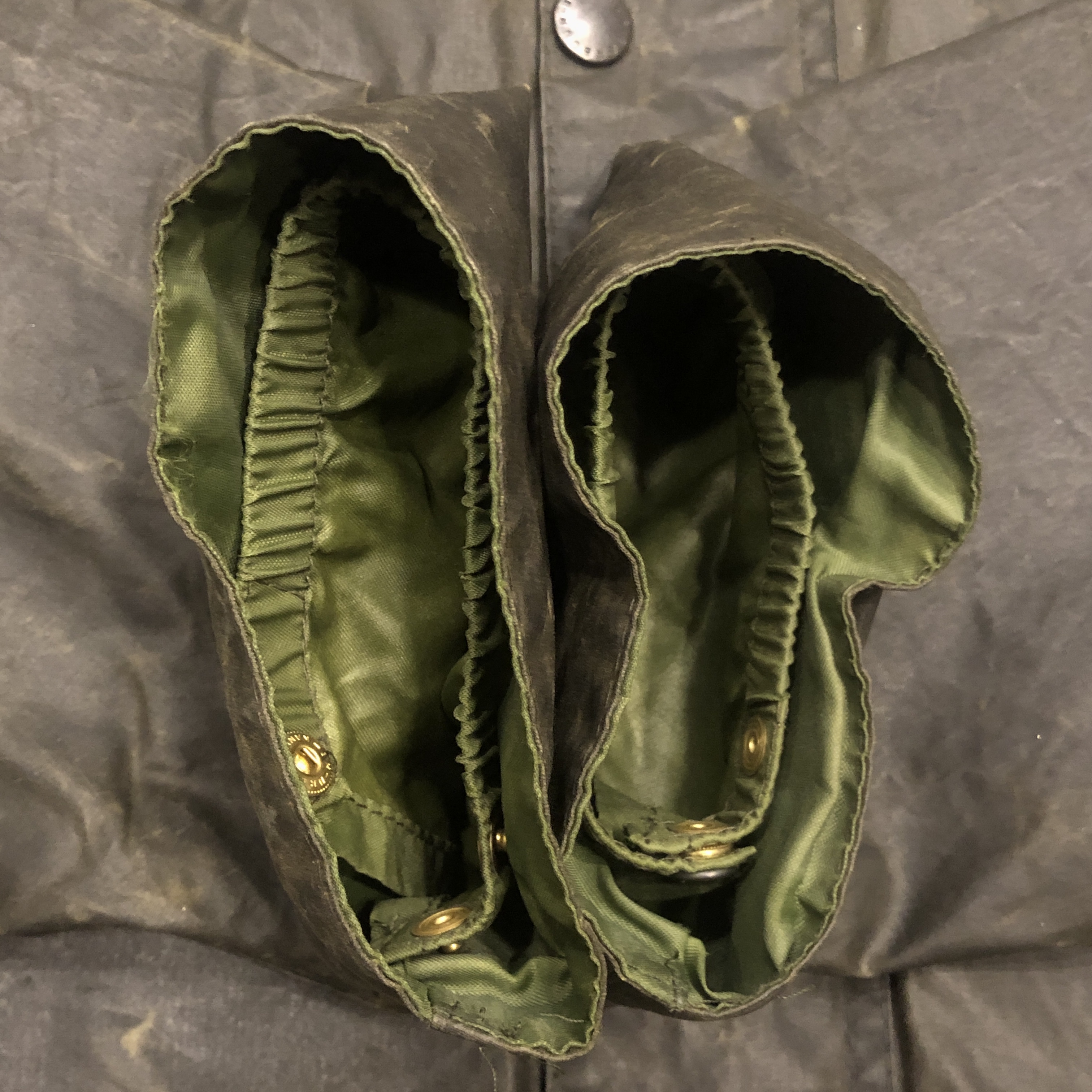 - 年代相応の着用感、オイルド生地特有のアタリや擦れ等が画像の様にございますが、古着慣れされている方でしたら問題なくお使いいただけます。