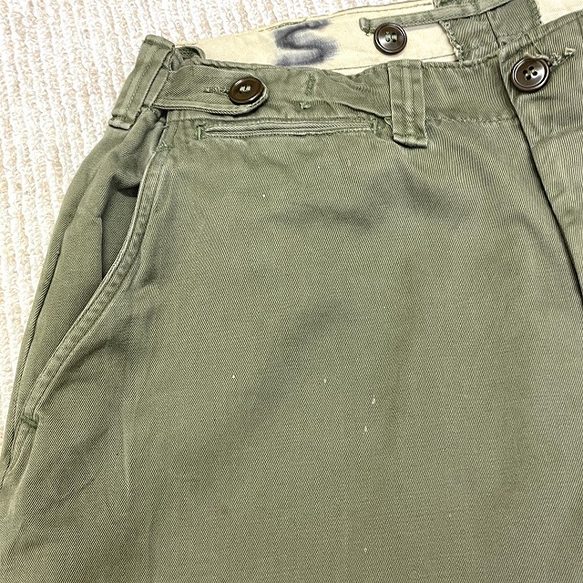 前左ポケット下部にリペアがあり、左裾のボタンが欠損している箇所がございます。