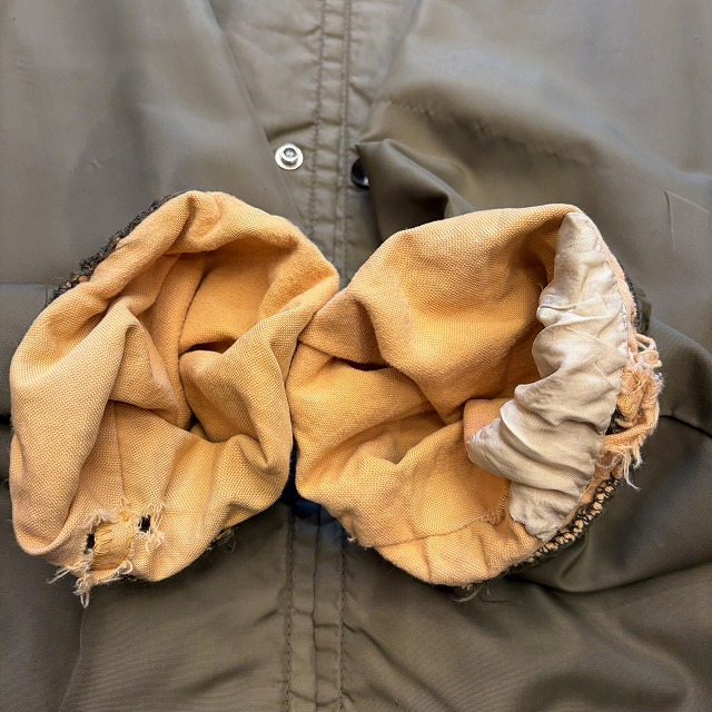 - 襟元、袖先、裾先にダメージや、リペアがみられます。その他、ステッチ抜け、薄汚れ、小穴等の年代相応の着用感がみられ、ユーズド慣れされた方におすすめの商品です。