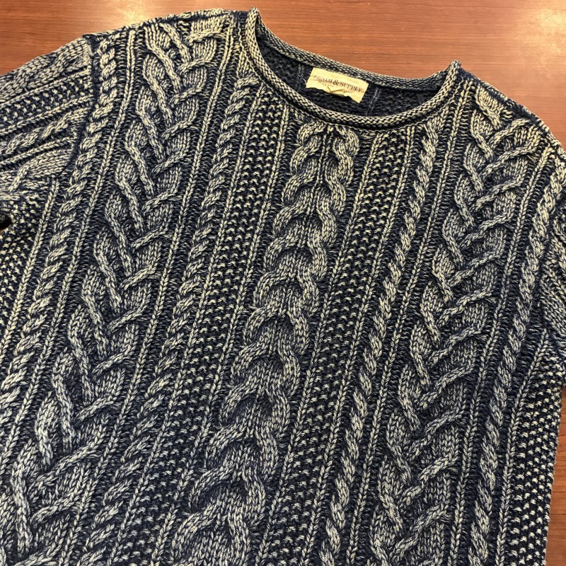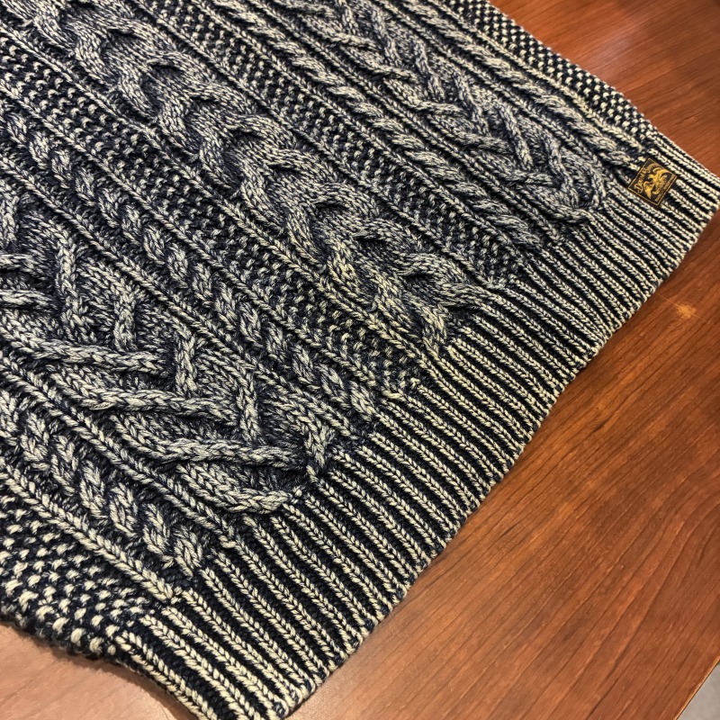 INDIGO COTTON CABLE SWEATER