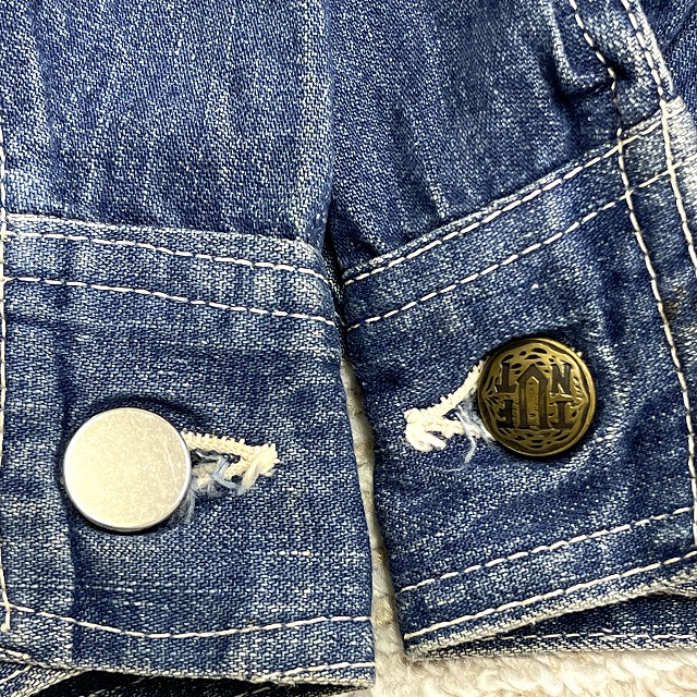 右胸ポケットのスナップボタンが破損しており、右袖のボタンが交換されております。