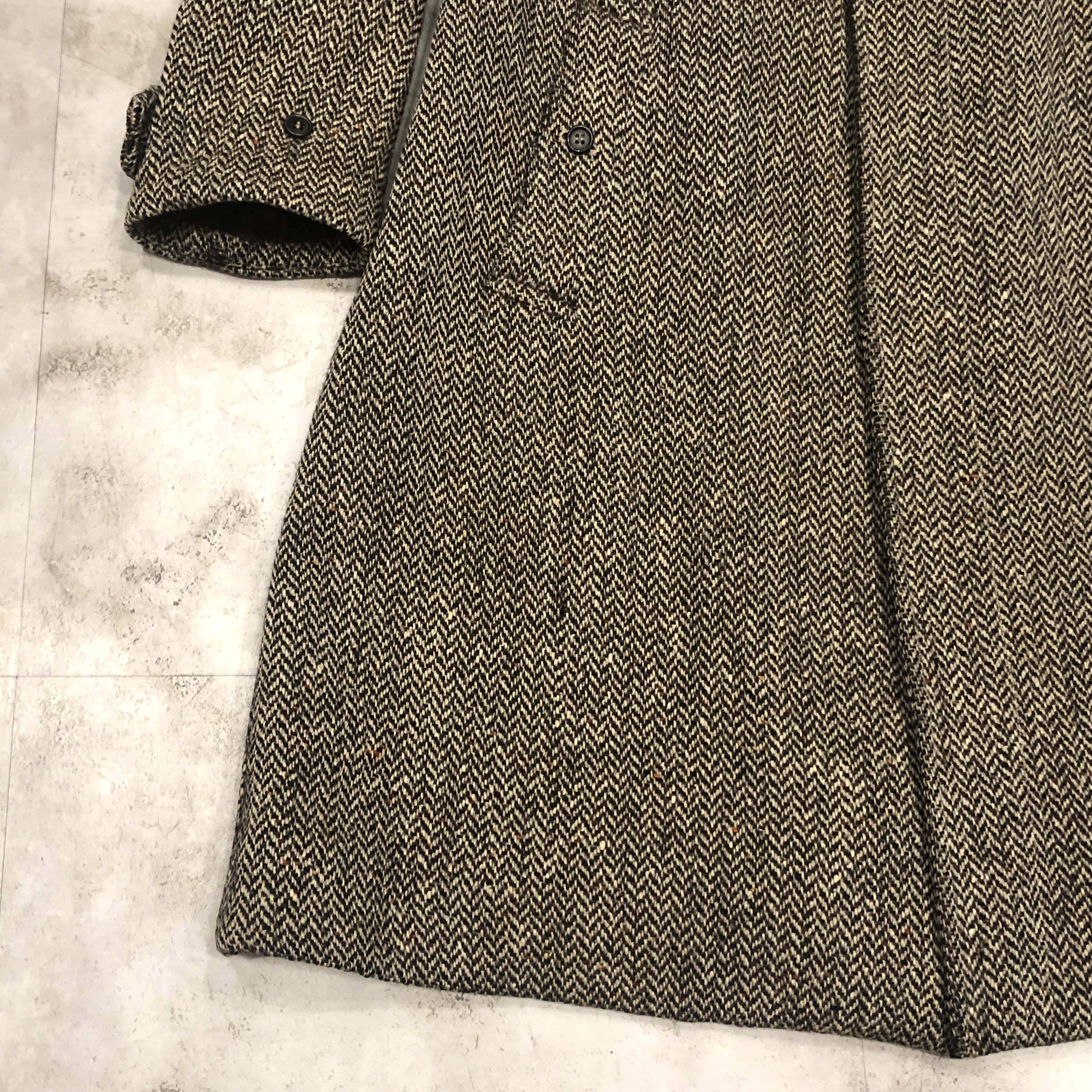数カ所ダメージはございますが、ヴィンテージとしては悪くないコンディションを保っており、これからさらに長くご愛用いただける一着かと思われます。流行に左右されることなく、10年、20年と着続けることで完成していくコートです。
