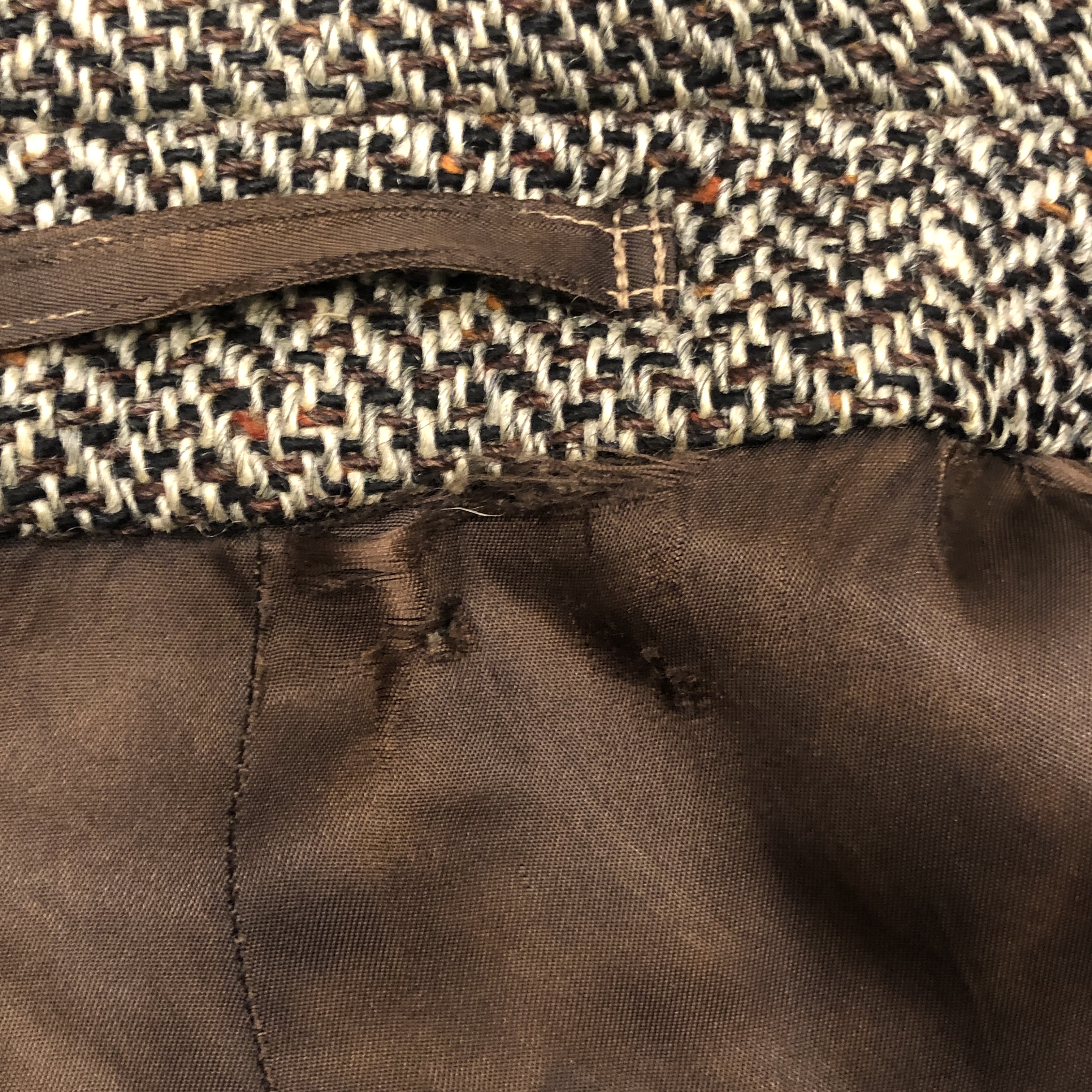 - 年代相応の着用感、内側裾部分と袖口、襟元、ポケット、ボタンホール上から4つに画像の様なダメージがそれぞれございますが、ヴィンテージ慣れされている方でしたら問題なくお使いいただける範囲です。