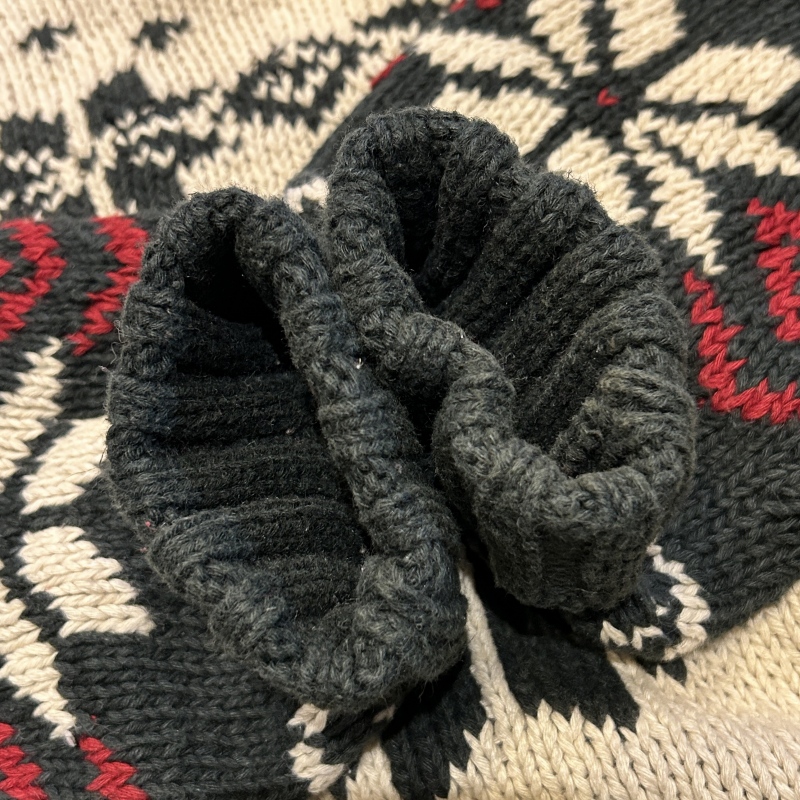 - ニット特有の糸の飛び出しや毛羽立ちがございますが、目立つダメージ等は無くまだまだ問題無く着用していただける状態です。
