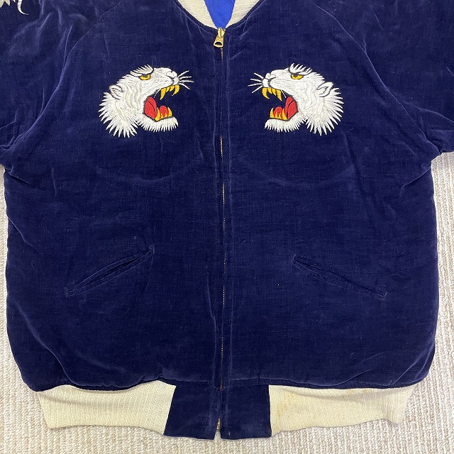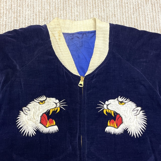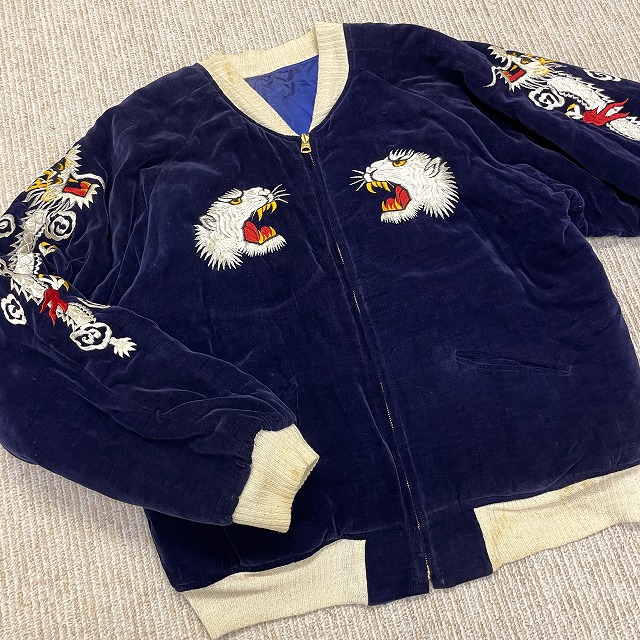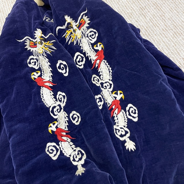 「別珍×サテン、ネイビー、虎/龍/鷹」