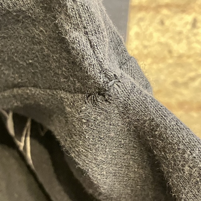 また、裾付近に小穴、裾ステッチの抜けがみられます。