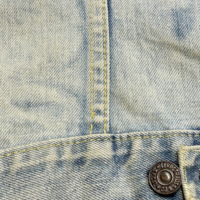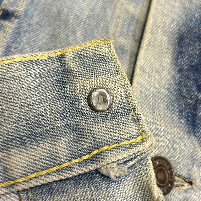 ボタン裏刻印『D』、均等V、胸ポケットフラップ裏 ライトオンスデニム、