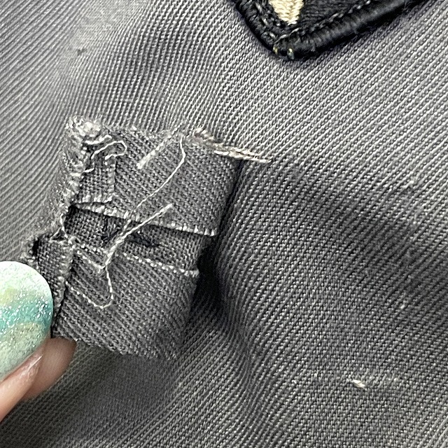 - 画像のように、薄汚れや汚れ、スレ、ステッチ抜け、リブ部分に小穴等がございますが、